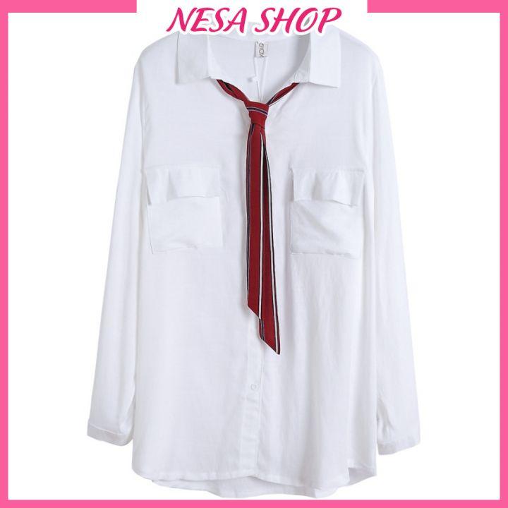 1.Tên sản phẩm: Áo sơ mi nữ trắng dài tay, áo form rộng, chất liệu Đũi tơ mềm mịn, sơ mi nữ đẹp phong cách Hàn Quốc NeSa Shop.