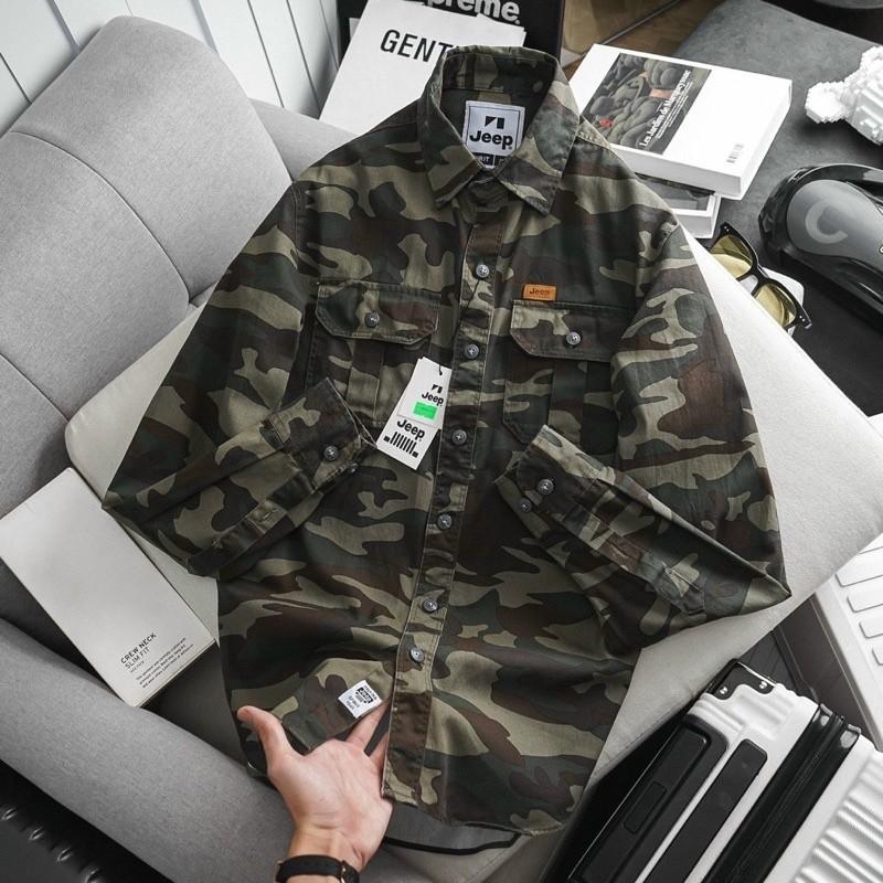 Hàng hiếm cho anh em đây ạ Áo sơ mi quân đội Jeep Màu đang hot lắm ạ Chất kaki được wash acid cực bụi , phom chuẩn mặc rất đẹp ạ Size: M: từ