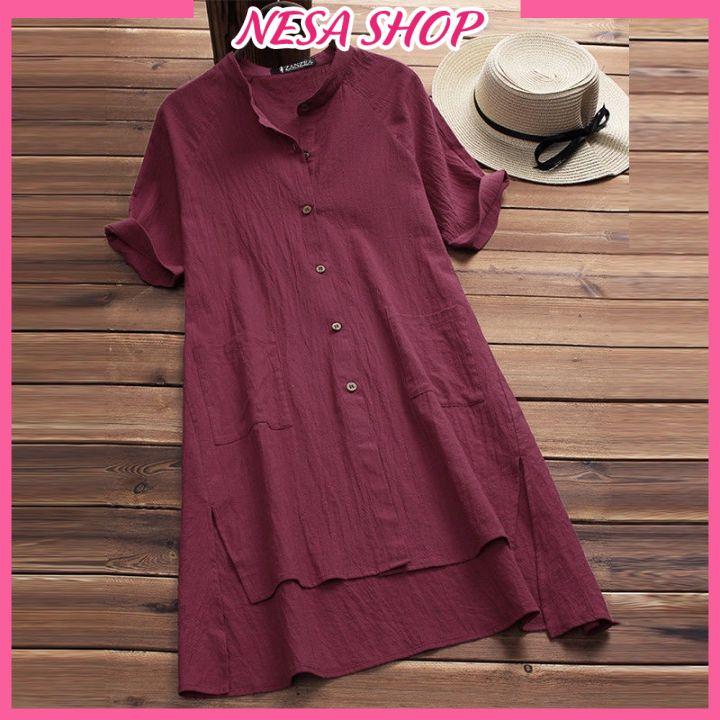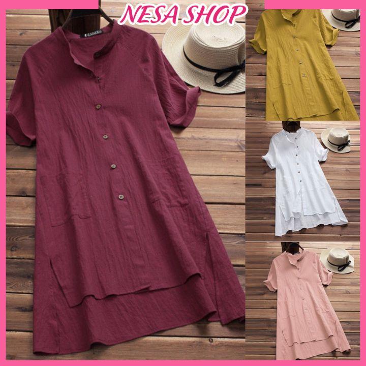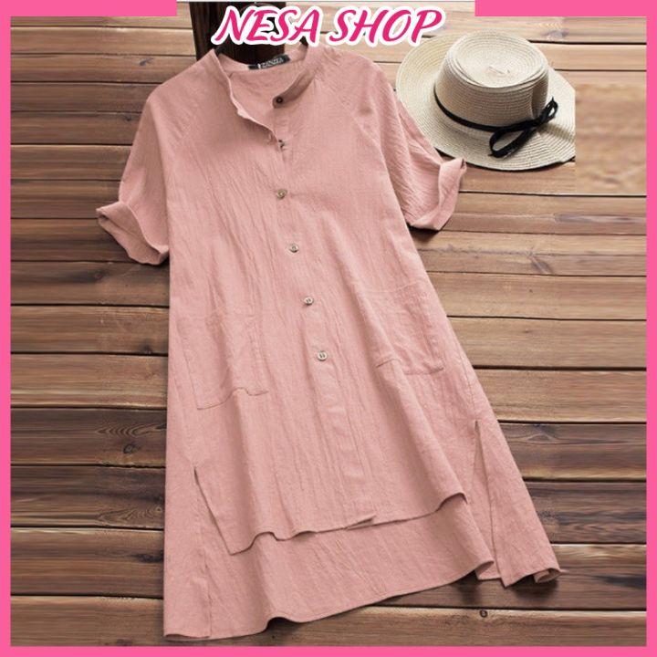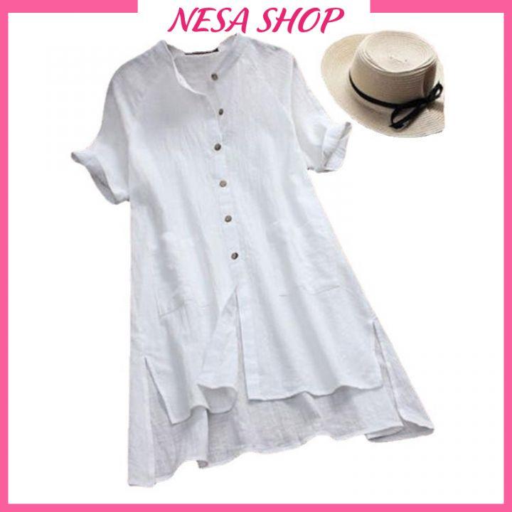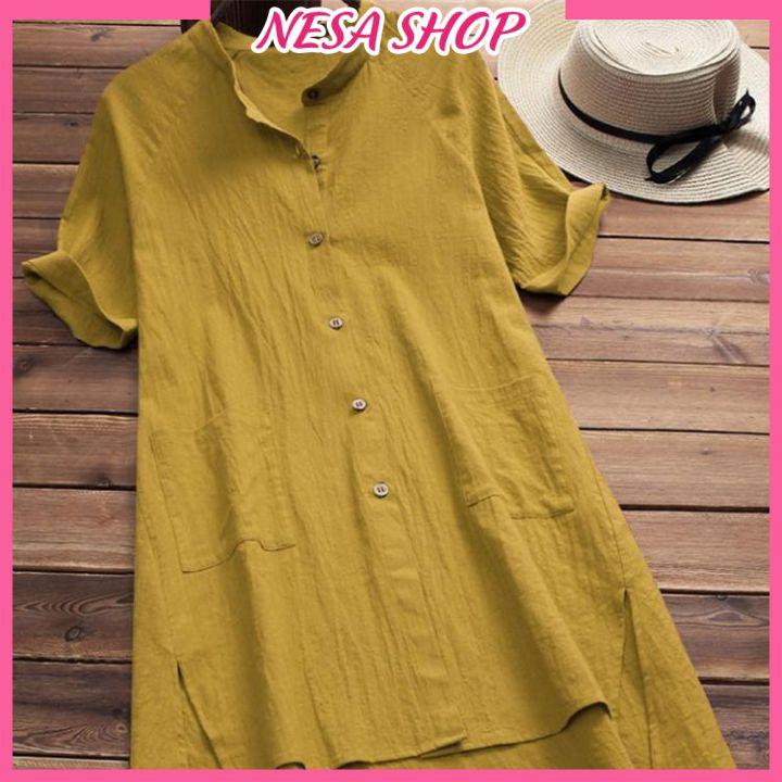 ✨Áo sơ mi váy dáng dài, chất liệu đũi mềm mịn, áo váy nữ, form dài rộng kiểu Hàn Quốc, NeSa Shop AKH.35