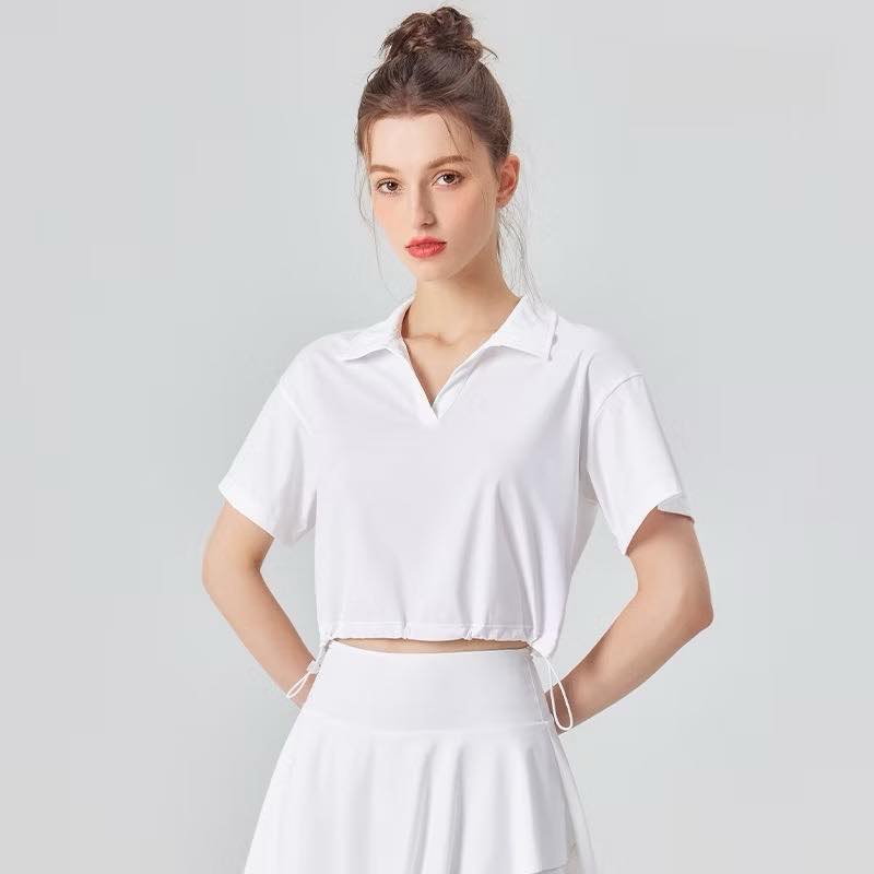 Áo Polo Croptop tay ngắn thời trang Quảng Châu có cổ ôm dáng thon gọn sang chảnh này bạn có thể kết hợp với quần jean, quần ống rộđều rất đẹp và cá tính đó!