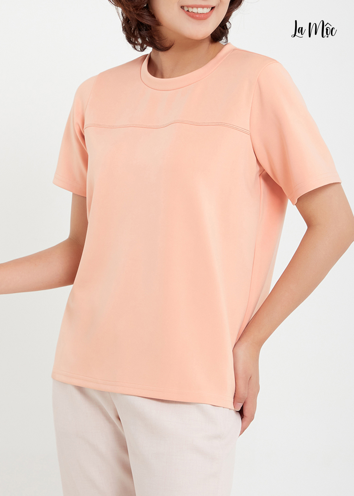Mua tại TiktokÁo thun nữ, áo thun LA MỘC cổ tròn, phối chỉ nối ngực, chất liệu Cotton poly, hàng thiết kế