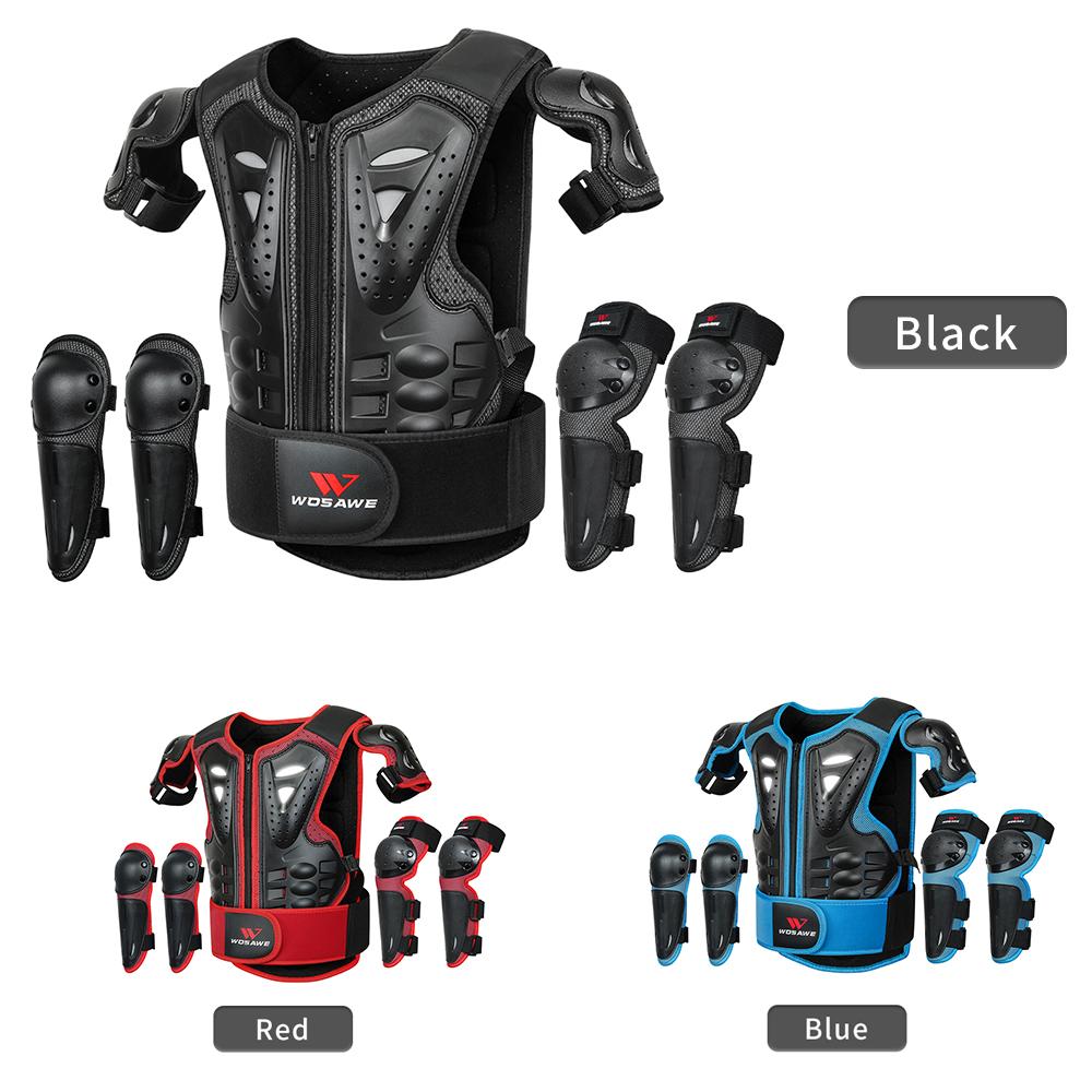 The protective gear set includes an armor vest, a pair of elbow pads and knee pads, providing full protection for your kids when riding, skiing, skating, and skateboarding.