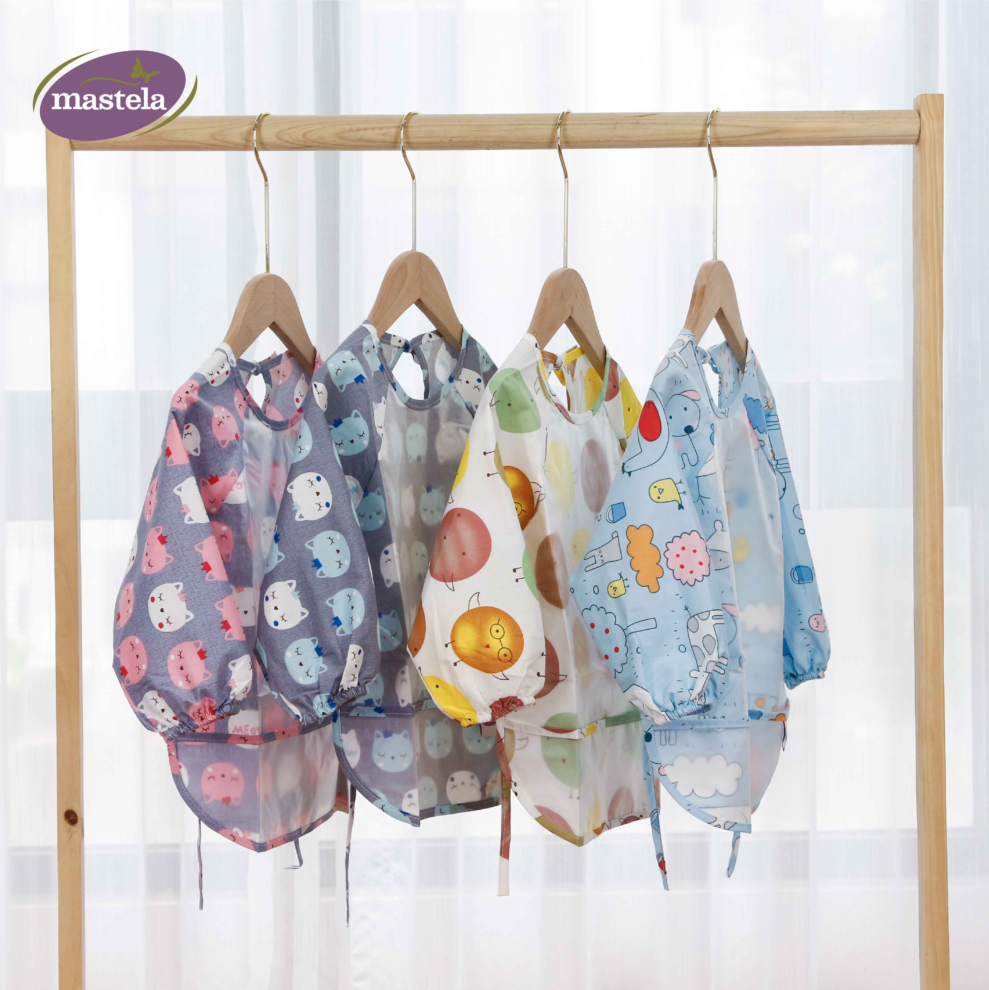 Áo yếm máng dài tay Cotton chống thấm nước cho bé tập ăn, tập vẽ Mastela
