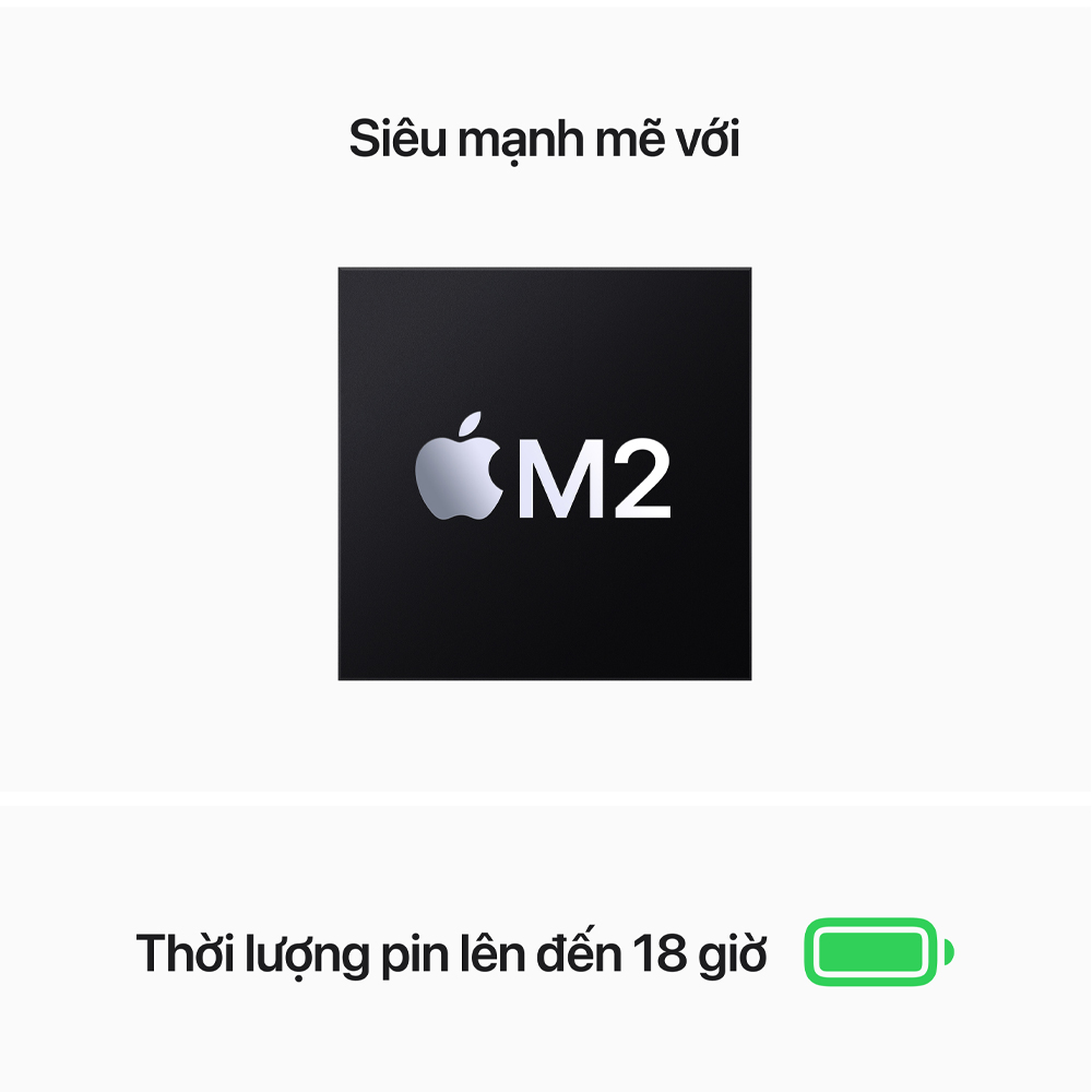 Siêu mạnh mẽ với chip M2 thế hệ tiếp theo, MacBook Air được thiết kế mới, kết hợp giữa hiệu năng đáng kinh ngạc và thời lượng pin lên đến 18 giờ trong vỏ nhôm mỏng ấn tượng.1