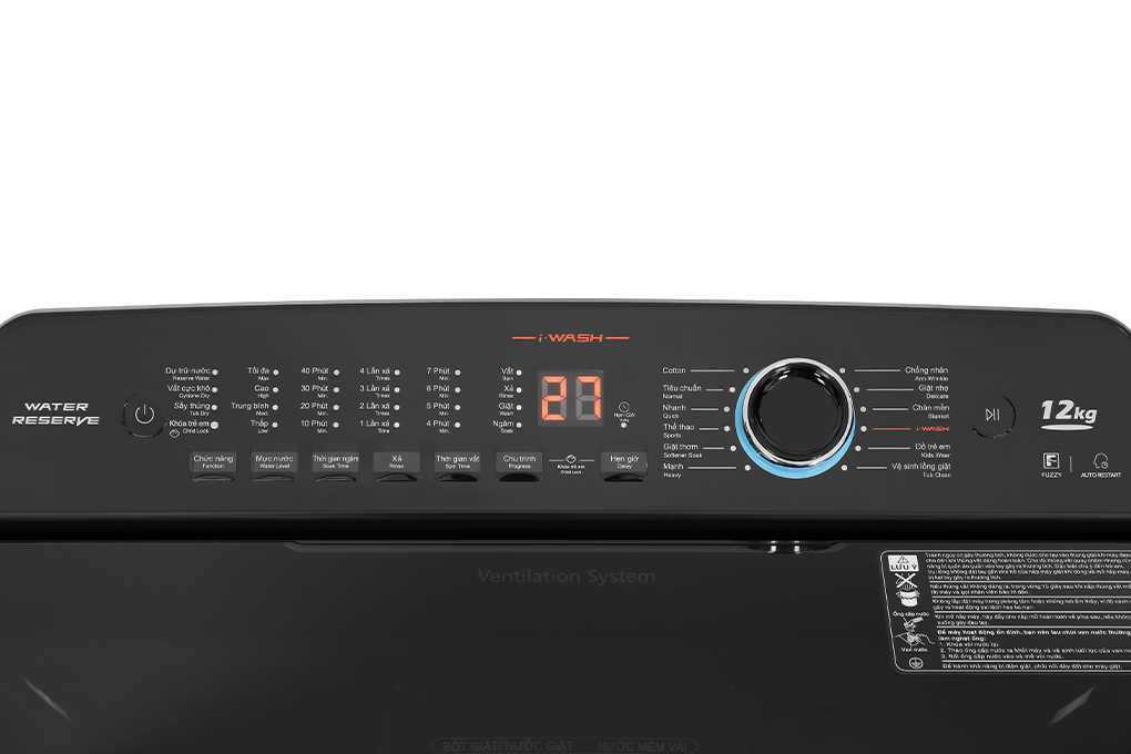 - Bảng điều khiển song ngữ Anh - Việt dễ sử dụng kết hợp với núm xoay để lựa chọn chương trình giặt làm cho việc thao tác trở nên thuận tiện hơn cho người dùng. Bên cạnh đó, bảng điều khiển được đặt phía sau cũng giúp người dùng dễ dàng hơn trong việc vận hành .