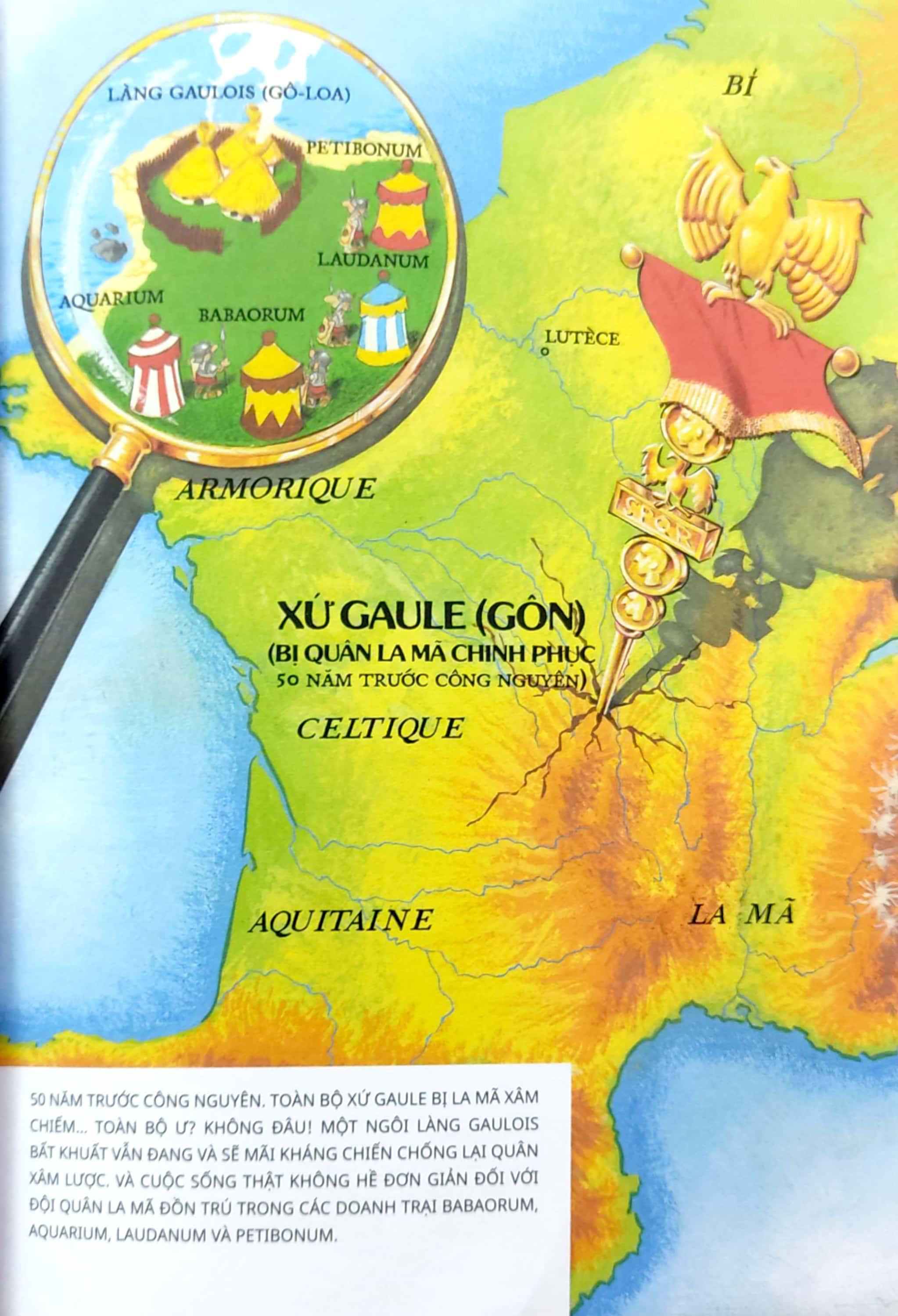 Xuất hiện lần đầu tiên trên tạp chí truyện tranh dành cho thiếu nhi Pilote vào ngày 29 tháng 10 năm 1959, bộ truyện tranh Astérix đã được chuyển ngữ sang 107 thứ tiếng, xuất bản gần 400 triệu bản trên toàn thế giới. Ấn bản của NXB Kim Đồng được dịch từ nguyên bản tiếng Pháp, in màu toàn bộ trên giấy định lượng cao.