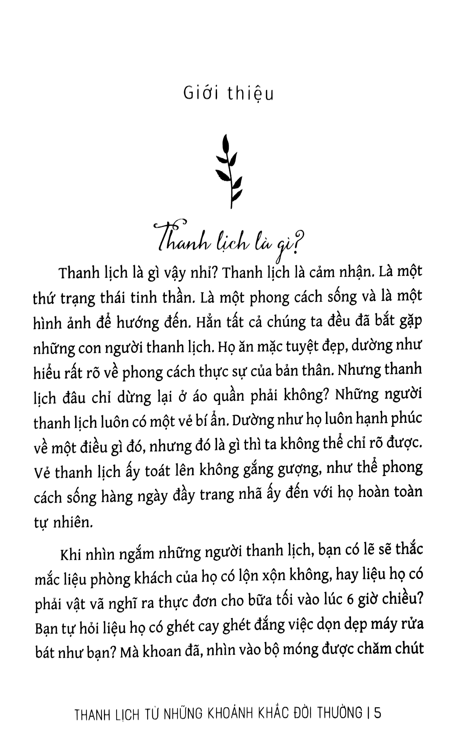 “Bạn có thể nghĩ rằng, sự thanh lịch chẳng liên quan gì đến những khoảnh khắc rất đỗi đời thường như chuẩn bị bữa ăn, dọn dẹp bát đĩa hay thanh toán hóa đơn. Nhưng điều bí mật là: Những khoảnh khắc này không tầm thường một chút nào. Au contraire (Ngược lại). Chúng mang đầy ý nghĩa. Nếu bạn thay đổi thái độ của mình ngay từ những việc nhỏ nhất – bạn có thể thay đổi hoàn toàn cuộc sống của chính mình.”