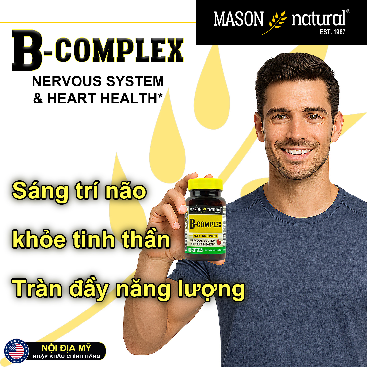 Mason B-Complex - Bổ sung Vitamin B toàn diện - Duy trì trí nhớ, giảm mệt mỏi, tăng tập trung Công thức chuẩn Mỹ - Hấp thu nhanh, hiệu quả lâu dài, an toàn cho