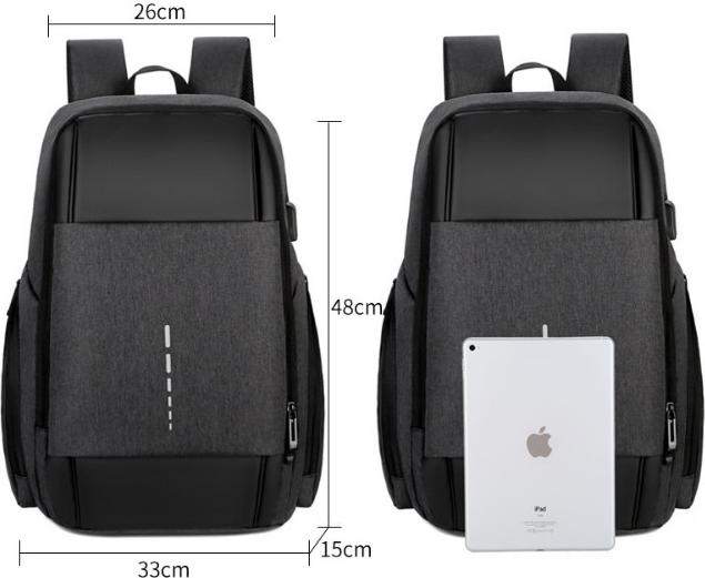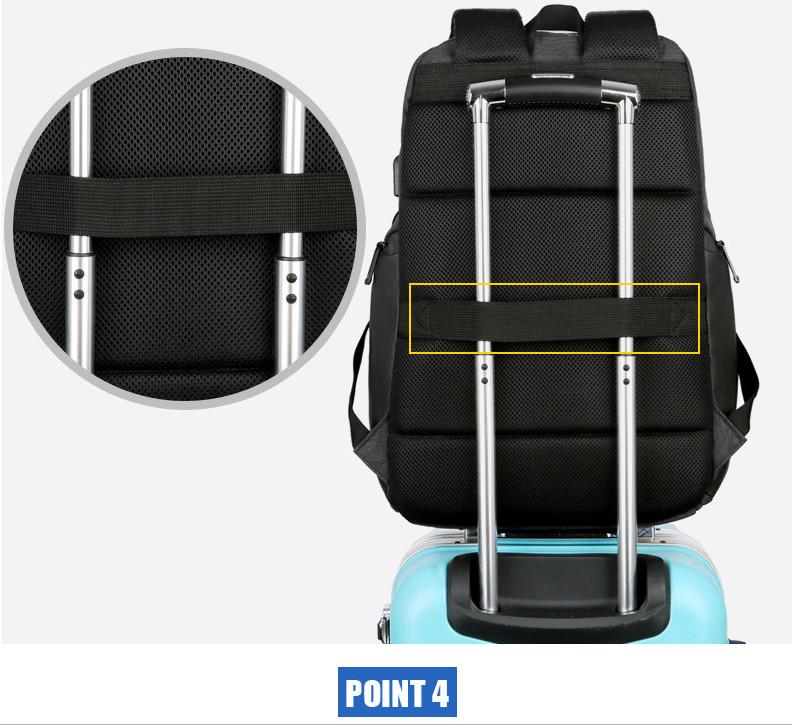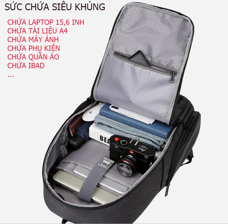 Balo du lịch chống nước BLU08 có cổng sạc USB, Balo nam đi học đẹp đựng laptop 15.6 inch