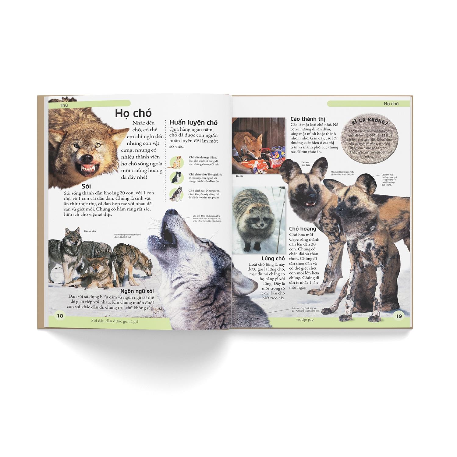 Với các hình minh họa trực quan sinh động, bắt mắt, cuốn sách cung cấp một lượng kiến thức phong phú, súc tích, dễ hiểu, và những câu hỏi vui, mẩu thông tin thú vị về động vật. Em sẽ được tìm hiểu về các nhóm động vật chính, cách chúng kiếm ăn, tự vệ, kết đôi hay sinh sản. Ngoài ra, em còn được biết về một số loại động vật kì lạ, ví dụ như những loài cá dưới biển sâu.