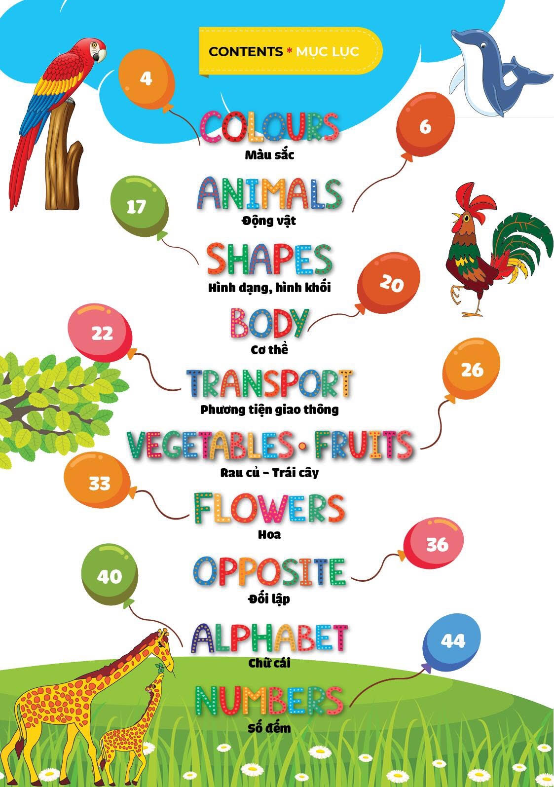 Bách khoa hình ảnh đầu tiên cho bé , song ngữ Anh - Việt , dành cho bé 0-6 tuổi( My First picture encyclopedia ) là những cuốn sách Anh – Việt vô cùng bổ ích dành cho các bé từ 0 đến 6 tuổi bắt đầu tập nói tiếng Anh. Bé sẽ được phát triển vốn từ tiếng Anh thông qua các chủ đề gần gũi như Giao thông, Bảng chữ cái, Các vật dụng trong nhà hay các chủ đề mang tính khám phá như Động vật… Không những thế, việc chọn lựa phương pháp chuyển tải thú vị của cuốn sách đã mở ra cho các em một thế giới hình ảnh sinh động và đầy màu sắc, giúp bé tiếp thu kiến thức và ghi nhớ dễ dàng hơn.