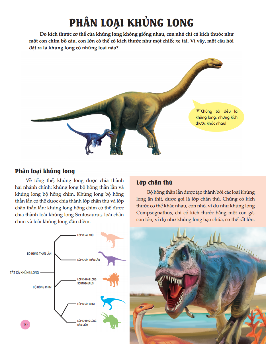 Sách sẽ mang đến cho các em những thông tin cũng những hình ảnh minh họa trực quan về niên đại sinh sống sống của khủng long, phát hiện khủng long, phân loại khủng long, khủng long hông thằn lằn, khủng long hông chim. Đến cuối cùng là tìm hiểu về những điều đứng thứ nhất của vương quốc khủng long .