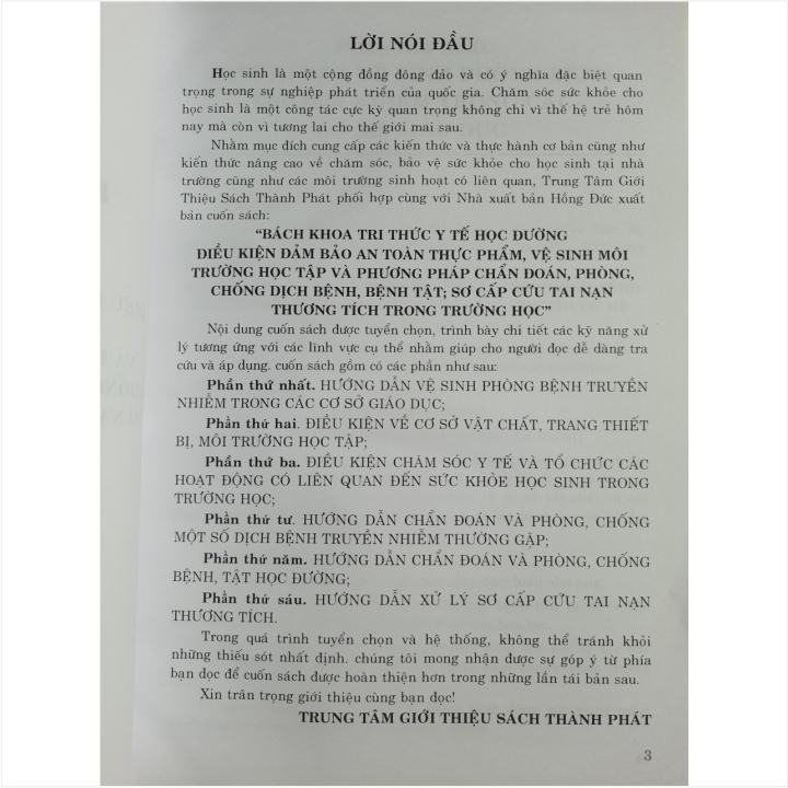 Nhà sách Nam Việt – Namvietbook xin trân trọng giới thiệu sách Bách Khoa Tri Thức Y Tế Học Đường - Điều Kiện Đảm Bảo An Toàn Thực Phẩm, Vệ Sinh Môi Trường Học Tập và Phương Pháp Chẩn Đoán Phòng Chống Dịch Bệnh, Bệnh Tật, Sơ Cấp Cứu Tai Nạn Thương Tích Trong Trường Học