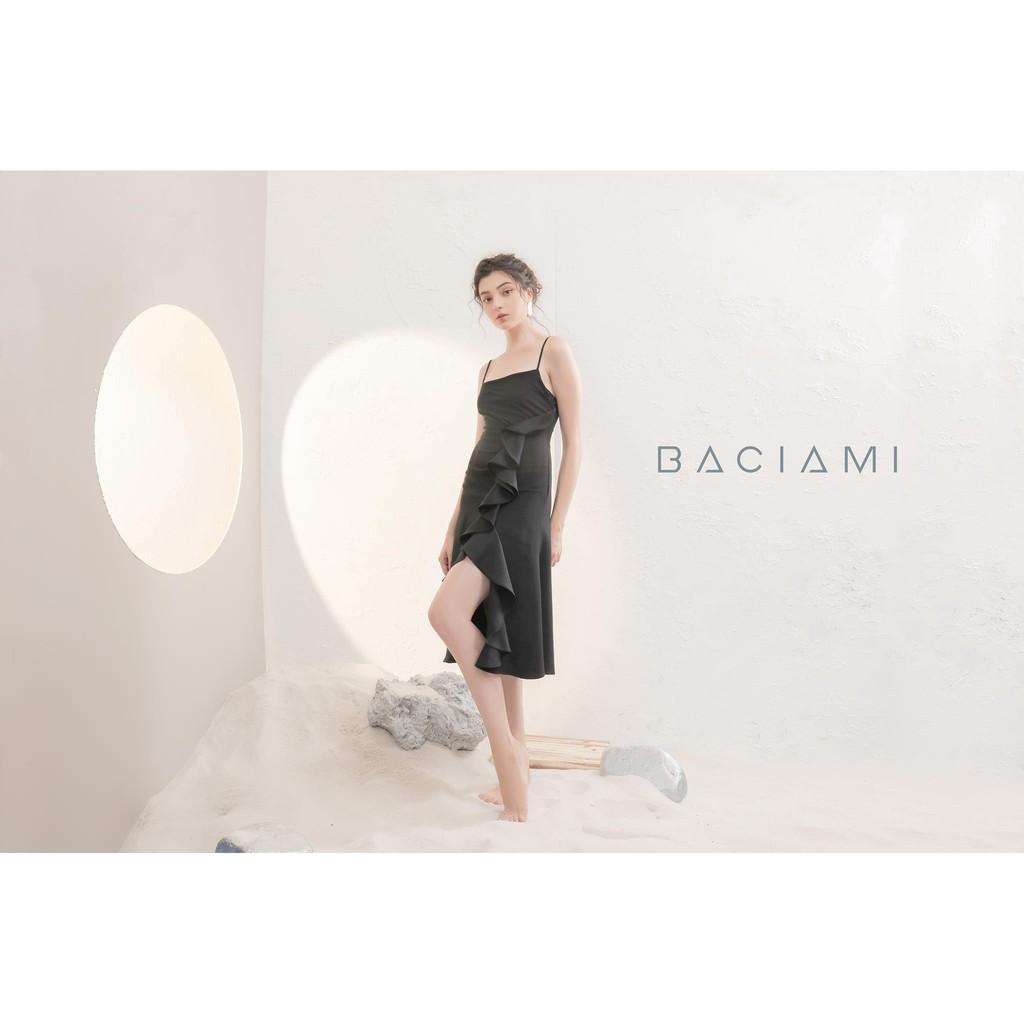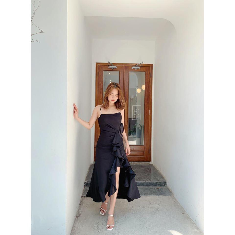 ✨Baciami-Đầm Đen 2 Dây Vạt Xẻ Bèo