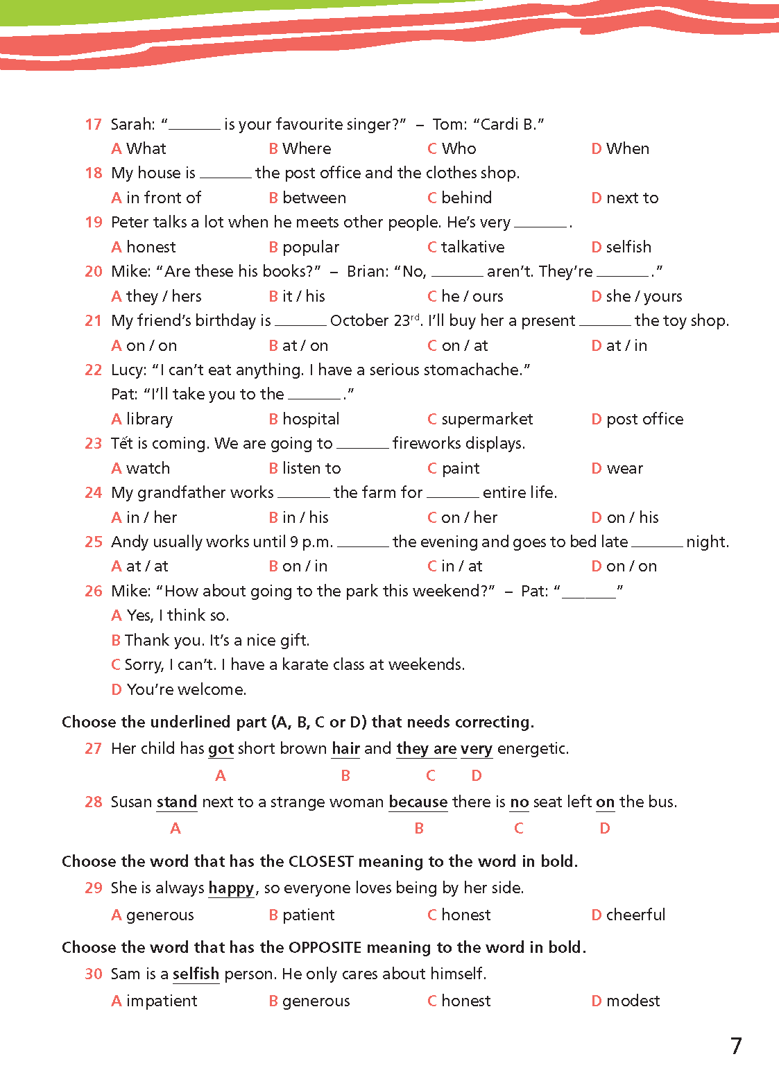 Practice Tests Grade 10 - 11 - 12 được biên soạn nhằm giúp học sinh củng cố kiến thức tiếng Anh lớp 10 và trang bị cho các em nguồn tài liệu luyện tập chuẩn
