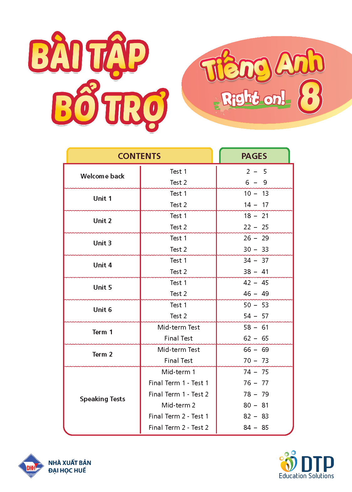 Mua tại TiktokSách bài tập bổ trợ Tiếng Anh 8 Right On! được biên soạn với mục tiêu mang đến cho các em học sinh nguồn bài tập bổ trợ phong phú theo sát chương trình học. Các bài tập được thiết kế theo các dạng bài kiểm tra đánh giá hiện hành, tạo cơ hội để các em củng cố kiến thức từ vựng, ngữ pháp, phát âm cũng như phát triển & tăng cường kĩ năng nghe-nói, trau dồi kĩ năng đọc-viết .