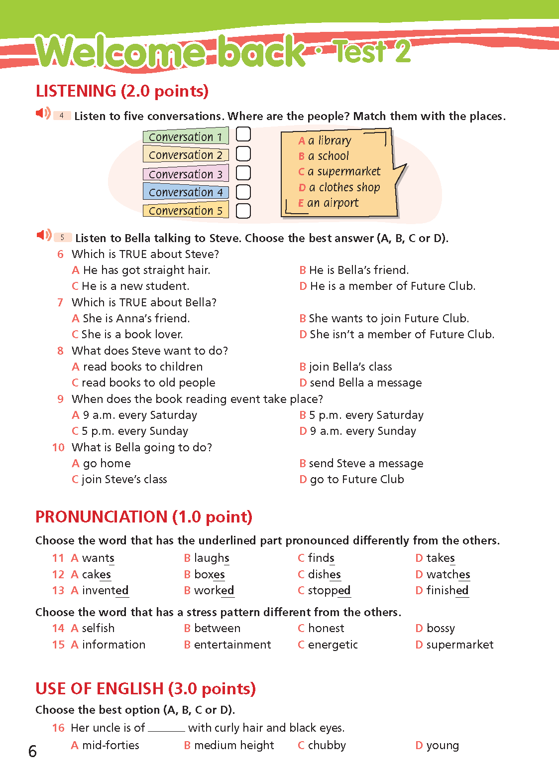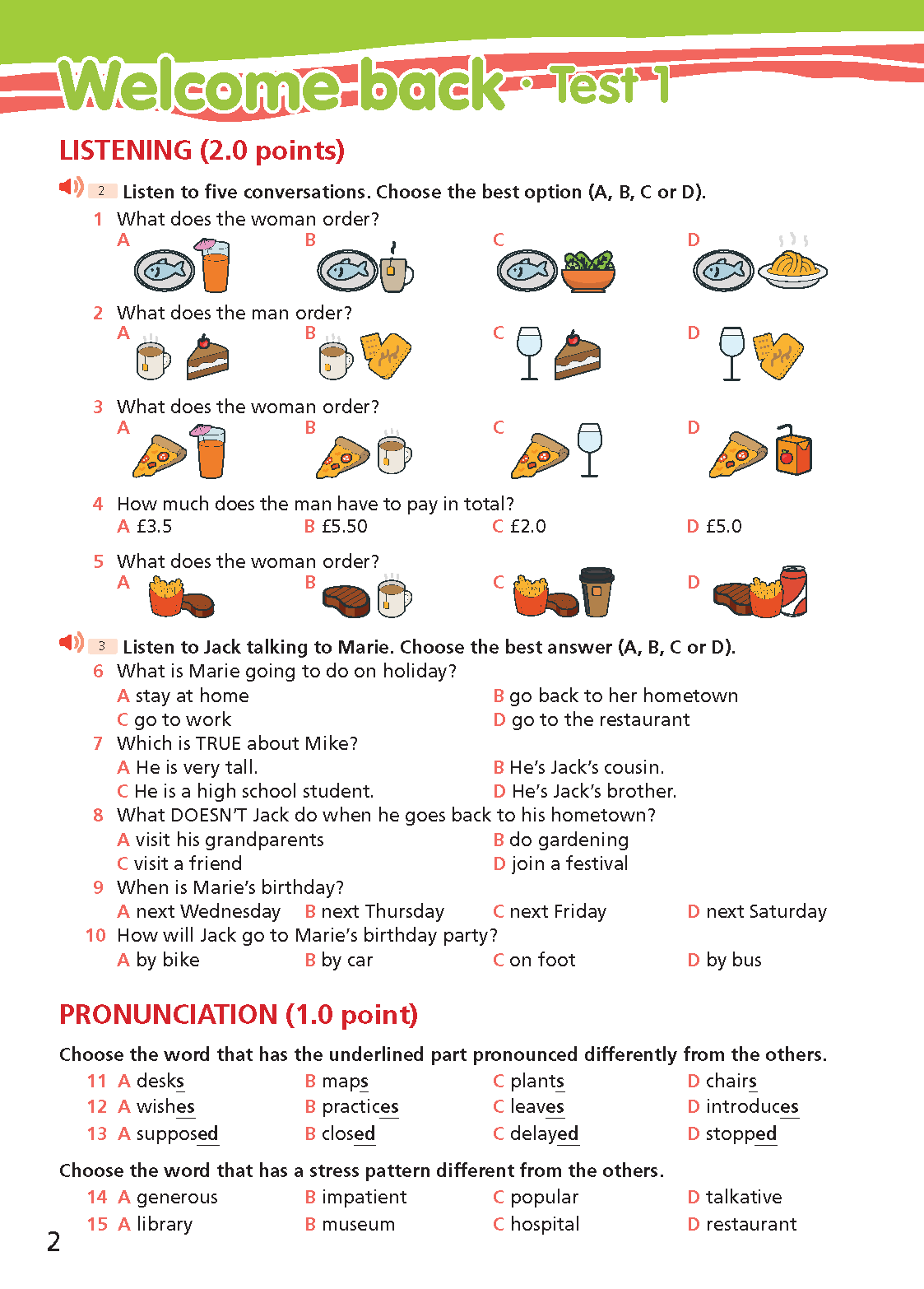 Tiếng Anh 8 Right On (Unit 2 Test 2) Phần 1