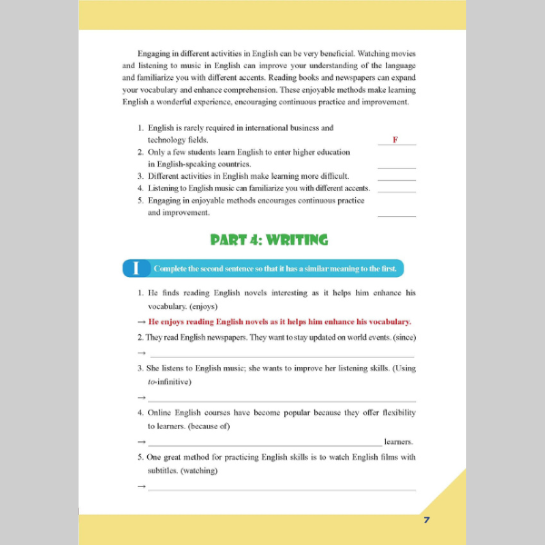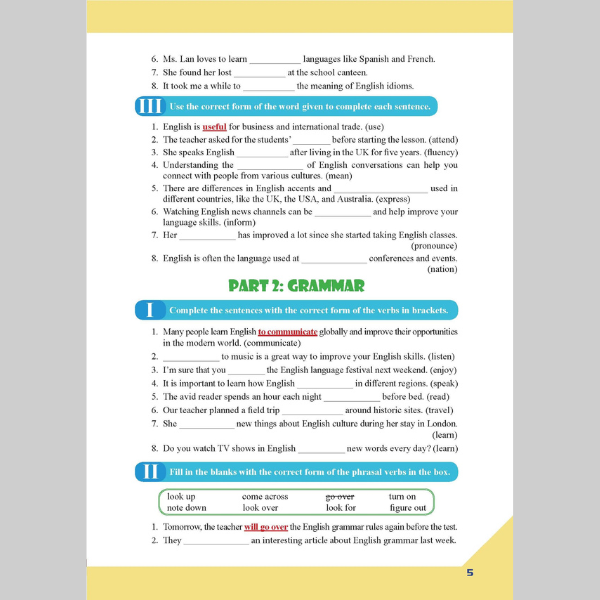 BÀI TẬP BỔ TRỢ TOÀN DIỆN TIẾNG ANH 8 - Người bạn đồng hành của các em học sinh -5 .TEST UNITS 7 & 8