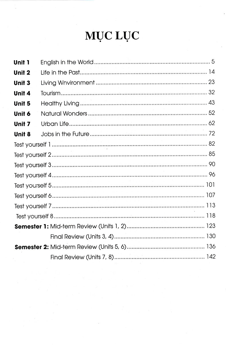 Ngoài ra, cuốn sách còn có phần Tự kiểm tra (Test yourself) ở cuối của bài học và các phần ôn tập giữa kì và cuối kì. Các phần này sẽ giúp các em học sinh tự kiểm tra lại những nội dung kiến thức mà mình đã học để kịp thời củng cố những kiến thức còn chưa nắm vững.