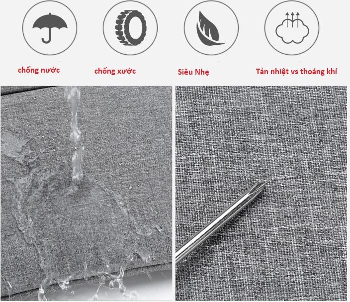- Chất liệu vải cao cấp chống bám bụi, hạn chế thấm nước, siêu bền bỉ - Thiết kế quai đeo có thể tháo rời, quai xách có thể ẩn vào trong khi không sử