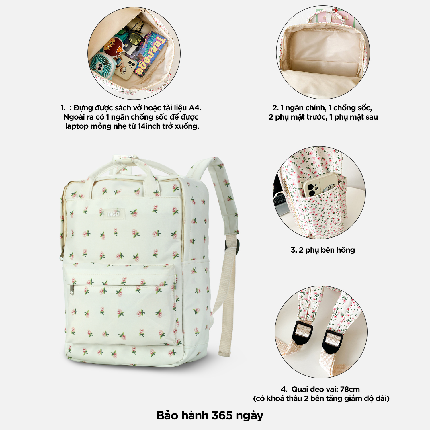 Balo laptop nữ 14” công sở, Ba lô vải Polyester hoạ tiết hoạt hình dễ thương này thích hợp cho cho các bạn mang đi làm, đi công tác, đi du lịch, đi học hay đi chơi.