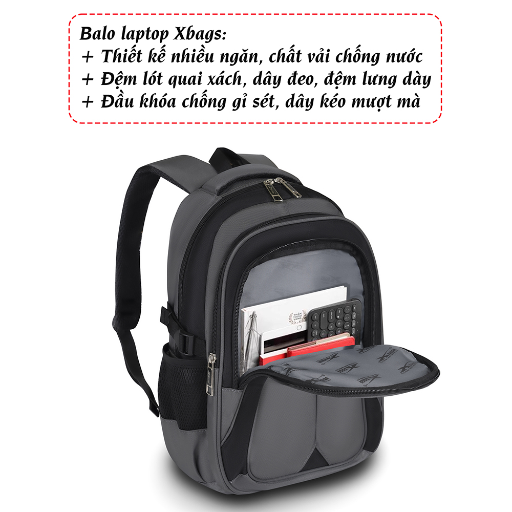 balo đựng laptop nam XBags này có 2 ngăn chính và nhiều ngăn phụ, balo đựng laptop nam này có nhiều ngăn, túi nhỏ khác nhau rất tiện dụng để các vật dụng khác như sách vở, dụng cụ học tập,