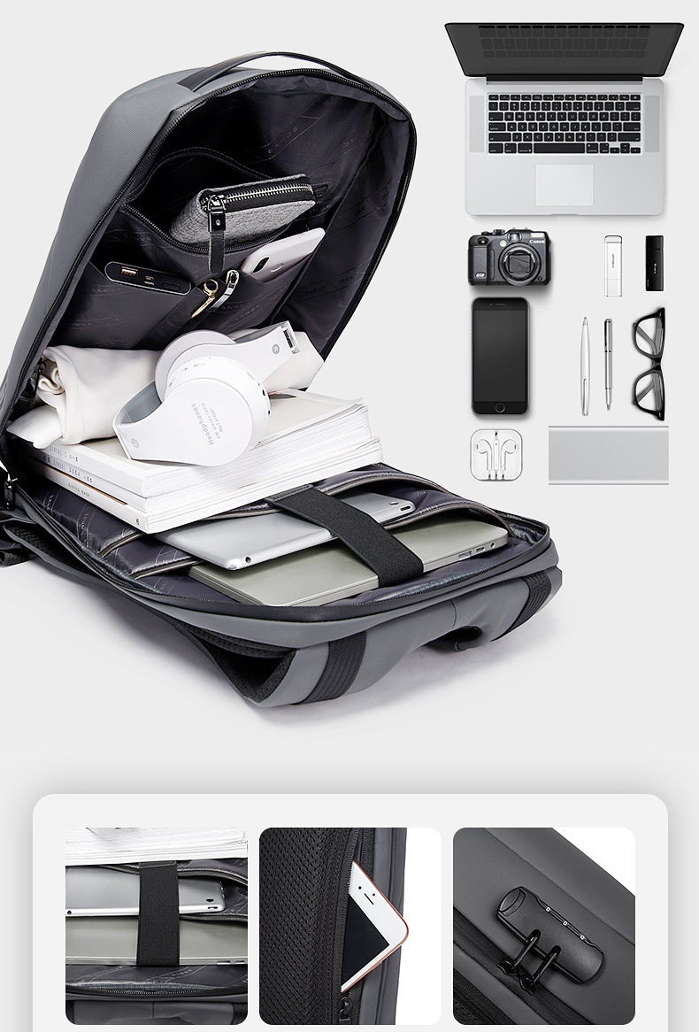 FEATURES - Business backpack with dedicated compartment to protect 15.6" laptop - Spacious U-shaped main compartment opening design increases luggage accessibility - Organized storage in the front compartment keeps essentials neatly organized - Expandable side