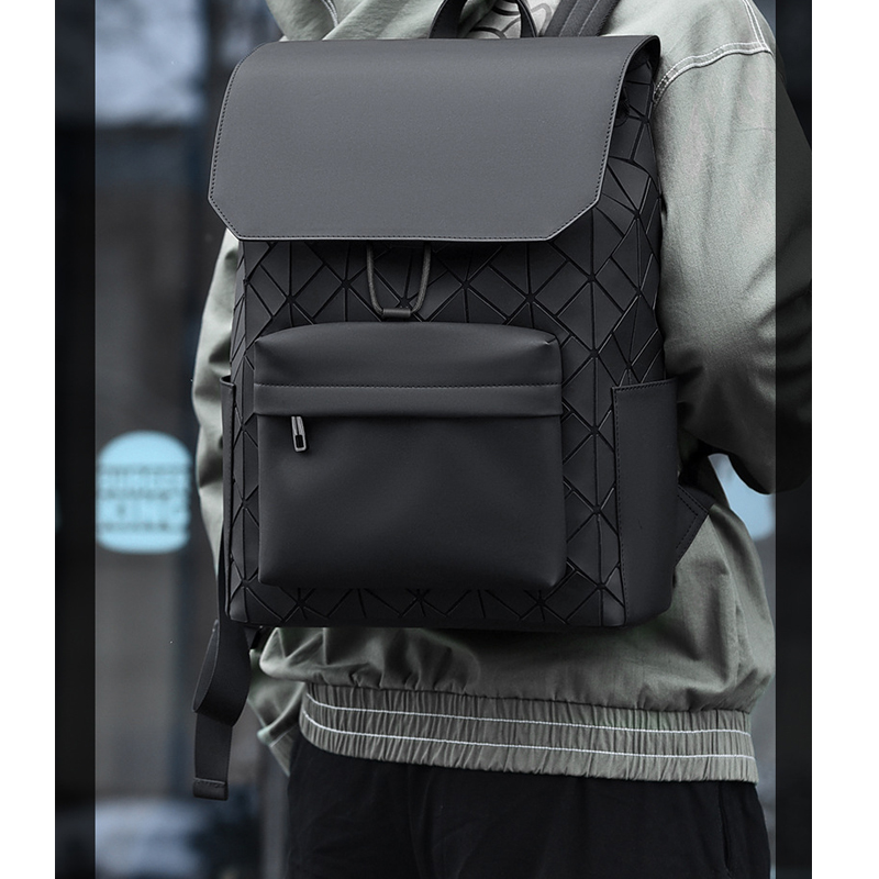 Chiếc Balo laptop nam nữ 15”, ba lô đi làm, đi học đựng máy tính 15inch ngăn trước khoá gài với thiết kế dáng đứng cùng chi tiết ngăn trước khoá gài phối da vân tạo