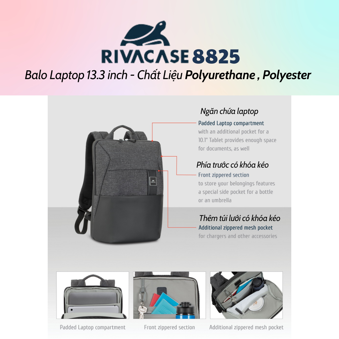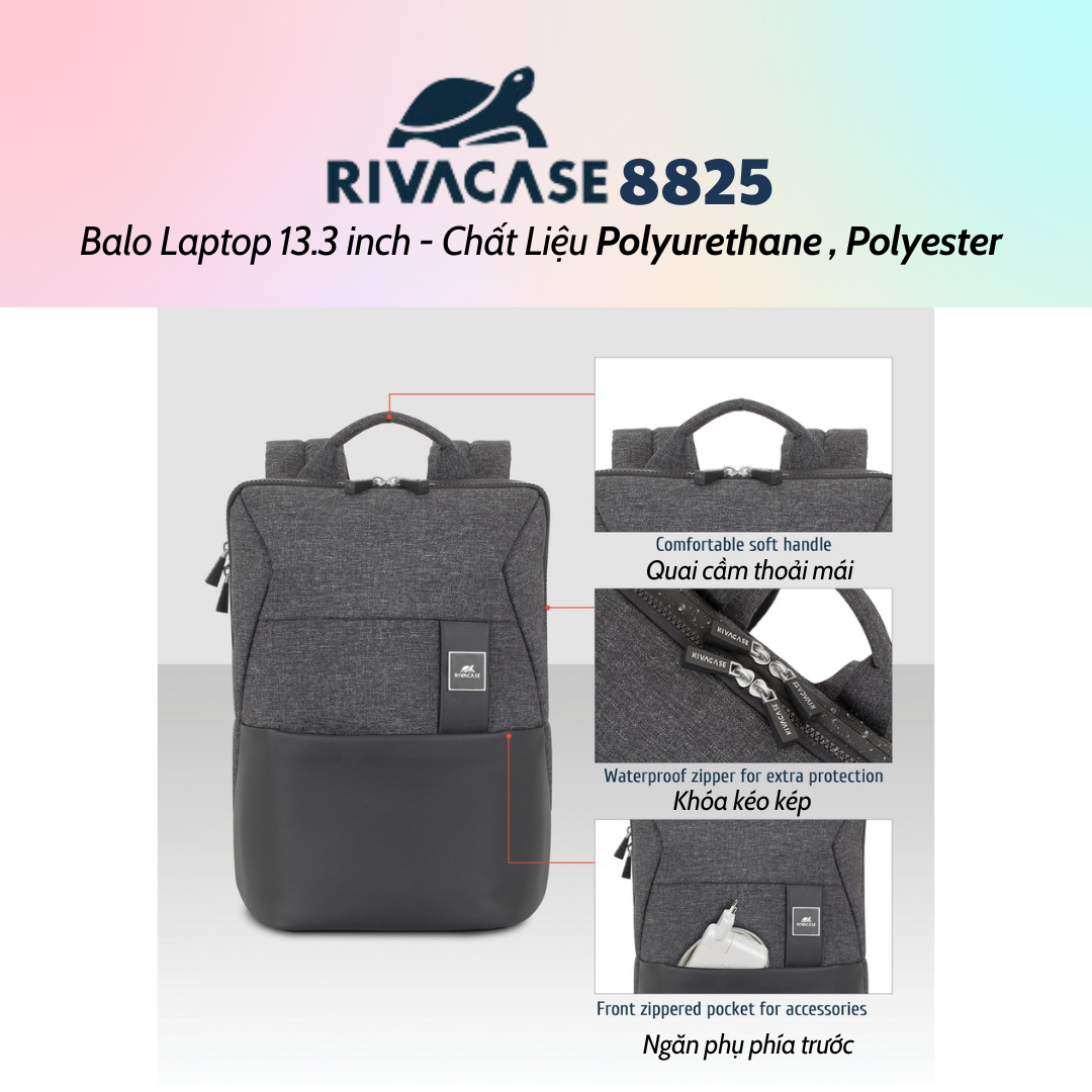 Ba lô Rivacase 8825 với các đường khâu kĩ lưỡng, tinh tế, được sản xuất bằng chất liệu giả da cao cấp và vải melange thời thượng, độ bền cao, sẽ giúp bảo vệ tối đa các vật dụng cá nhân cũng như các thiết bị quan trọng của người dùng. Mang thiết kế sang trọng và hợp thời trang, Rivacase 8825 phù hợp cho những chuyến du lịch, những chuyến công tác hoặc cho việc đi học, đi làm hằng ngày.