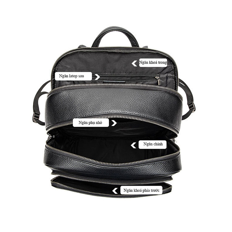 02 Ngăn chính bên trong rộng lớn và có nhiều ngăn nhỏ như khe thẻ, khe cài bút, ngăn khóa nhỏ, ngăn để laptop 15.6inch…tiện lợi giúp bạn để đồ đạc khoa học hơn.