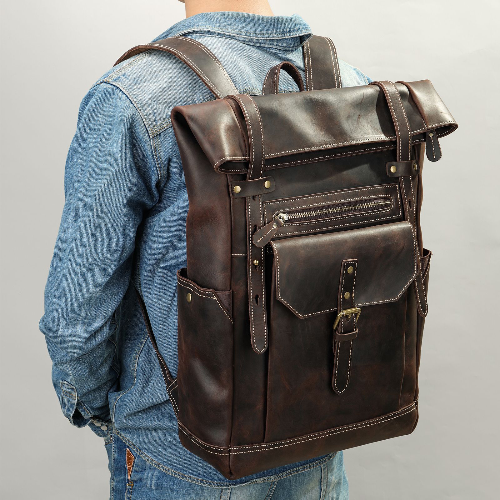 Kích thước : rộng 32cm X cao 47cm X dày 12cm Phương pháp sản xuất: thủ công Chất liệu :Da bò thật 100% Trọng lượng: 1.73kg Màu: Nâu Chức năng: thoáng khí, chống mài mòn,