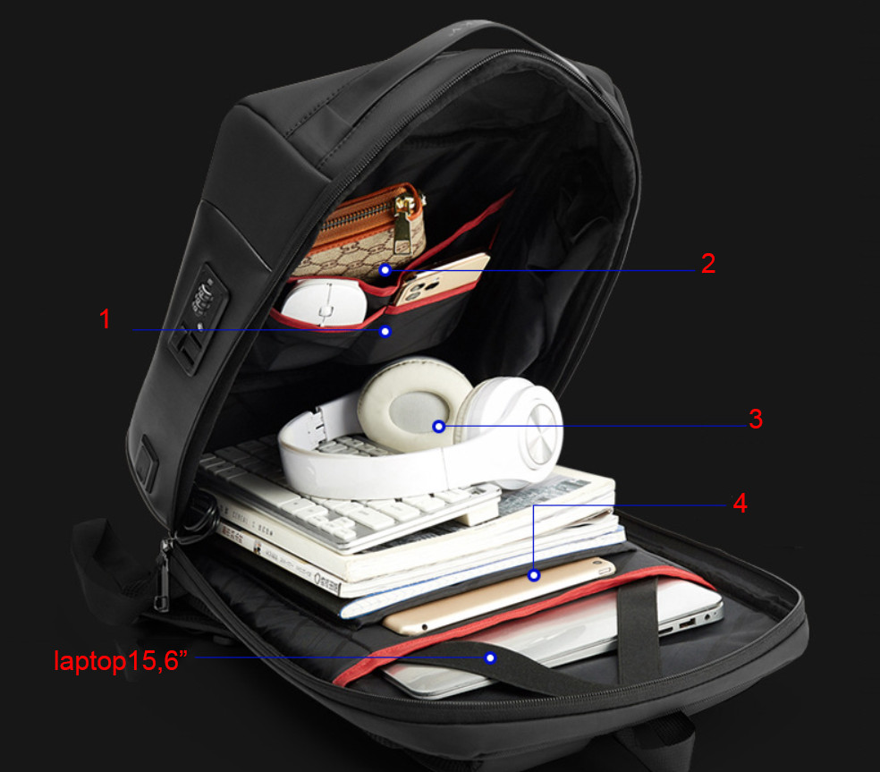 FEATURES - Business backpack with dedicated compartment to protect 15.6" laptop - Spacious U-shaped main compartment opening design increases luggage accessibility - Organized storage in the front compartment keeps essentials neatly organized - Expandable side