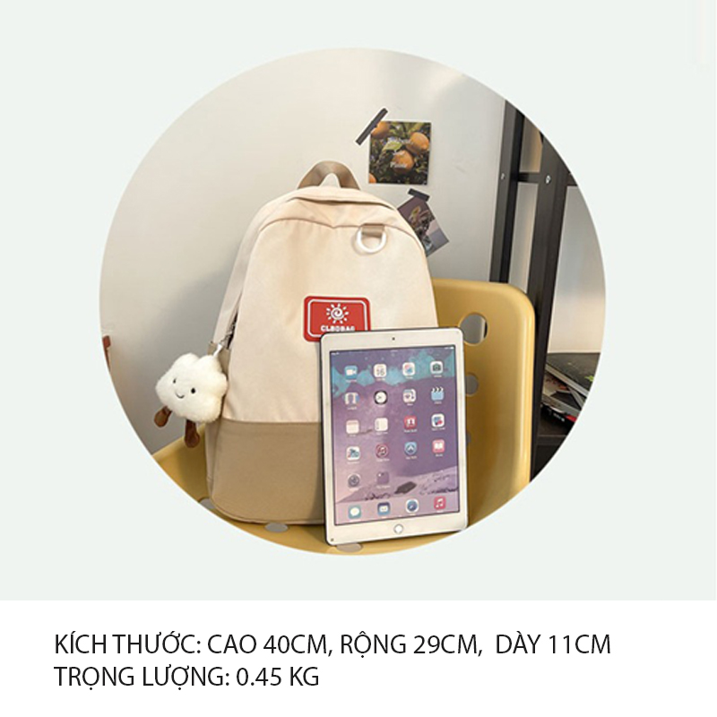 Kích thước : rộng 21cm X cao 29cm X dày 13cm Trọng lượng: 0.4kg Phương pháp sản xuất: công nghệ cao Chất liệu : Vải Màu: Đen, Xám, Kem, Hồng Chức năng: chống mài mòn, dễ làm sáng, chống sốc Thiết kế : trẻ trung ,sang trọng, phong cách dễ thương