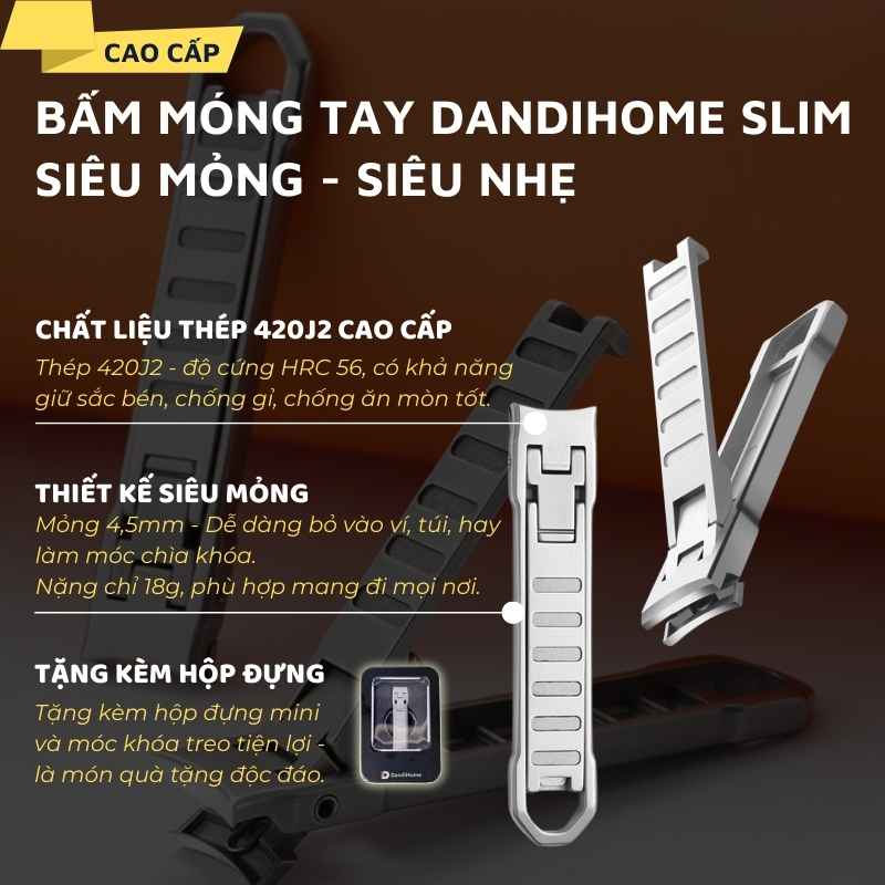 Mua tại TiktokBấm móng tay DandiHome slim siêu mỏng, siêu nhẹ - Tặng kèm hộp đựng và móc khóa BẢO HÀNH 6 THÁNG