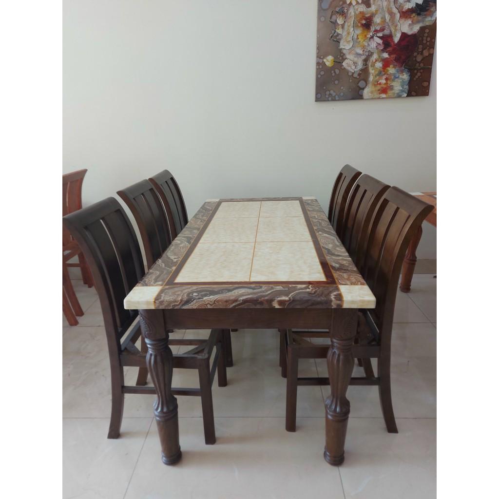 Bộ Bàn ăn 6 ghế bàn tràn mặt đá với quy cách thiết kế tiêu chuẩn, đảm bảo đem lại sự thoải mái, ấm cúng cho phòng bếp nhà bạn.