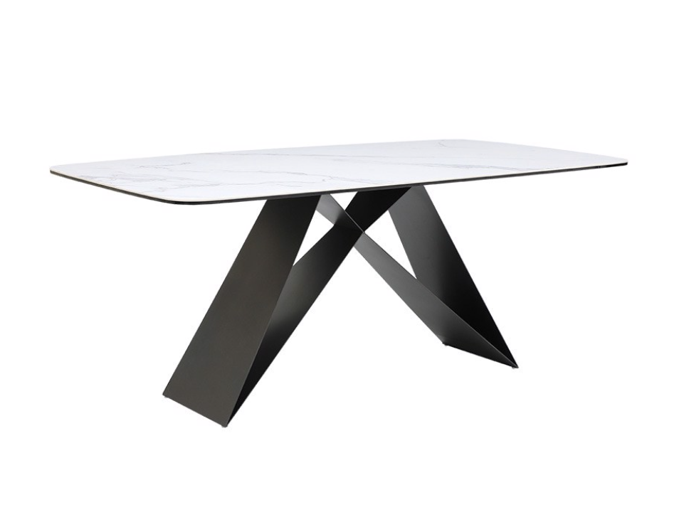 Bàn ăn URBAN, Mẫu bàn ăn hiện đại chân sắt sơn tĩnh điện hình chữ U, Mặt đá Ceramic chống trầy xước