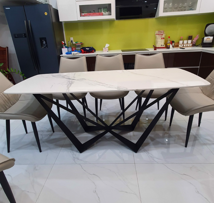 ✨Bàn ăn cao cấp Tundo mặt đá chân sắt W