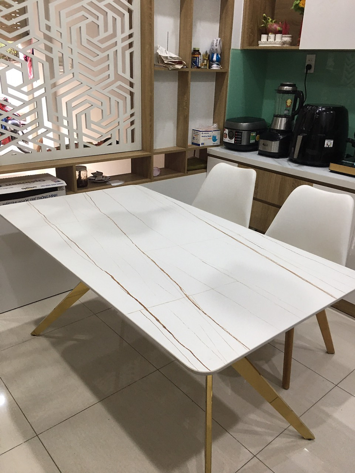 Giao bộ bàn ăn mặt đá Ceramic bóng chân chữ H kèm ghế Zena cho khách - noithatgiakho.com