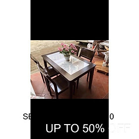 Bàn Ăn Gỗ Sồi 6 Ghế Cao Cấp Mặt Đá Đen Hiện Đại