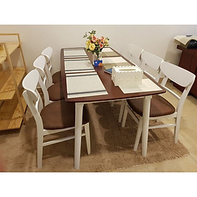 *** Quý khách hàng vui lòng chọn sản phẩm nhà bán TUNDO để nhận được sản phẩm đúng với chất lượng *** 1 Bộ: 1 Bàn + 6 Ghế Chất Liệu: Khung gỗ cao cấp,