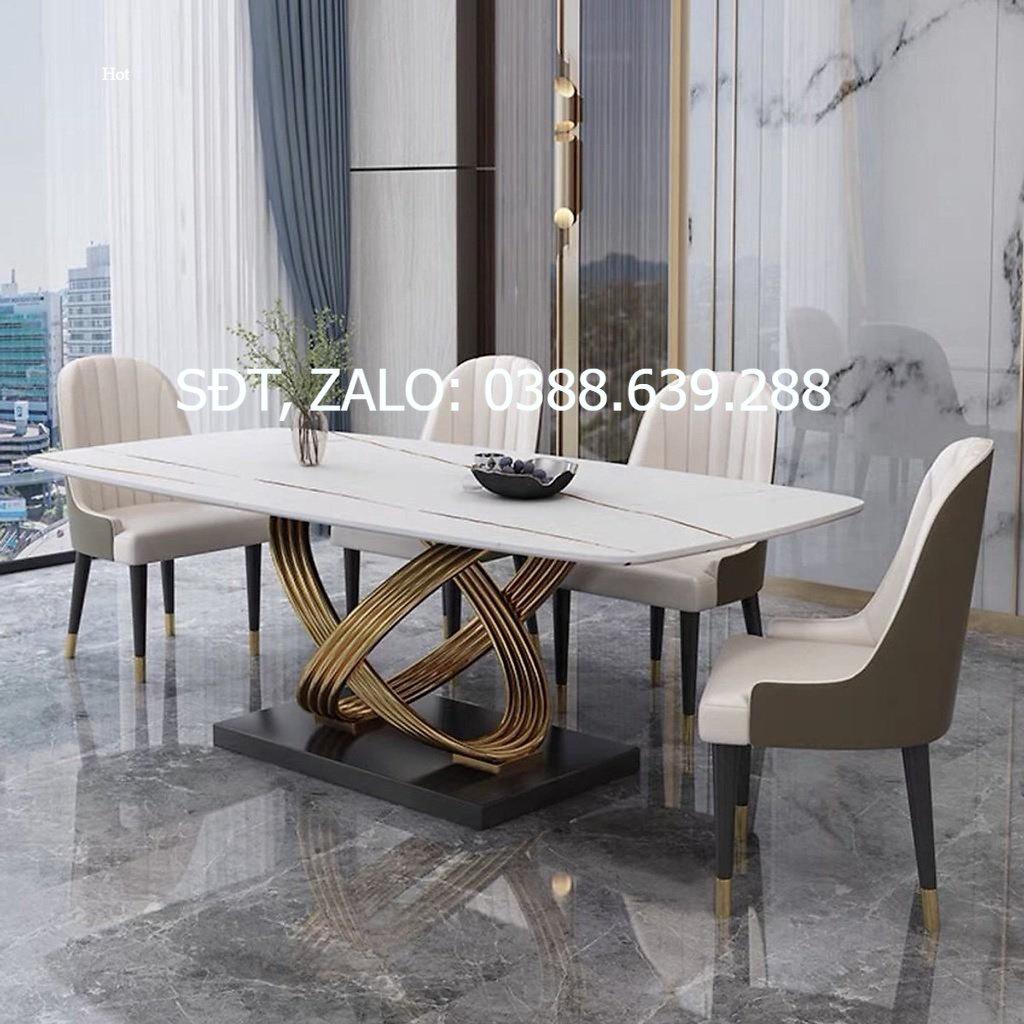 Bộ bàn ăn mặt đá chân inox mạ vàng cao cấp - BÀN ĂN GIÁ RẺ Hotline: 0788.050.060