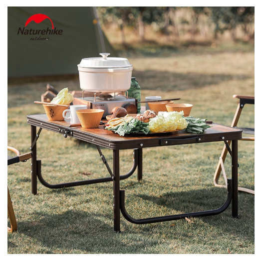 NatureHike CNH22JU038 chất liệu hợp kim nhôm vân gỗ nhẹ, bền và vô cùng sang trọng. Thiết kế khung bàn chữ X hỗ trợ ổn định hơn, tải trọng cao tới 30kg. Khung bàn có thể