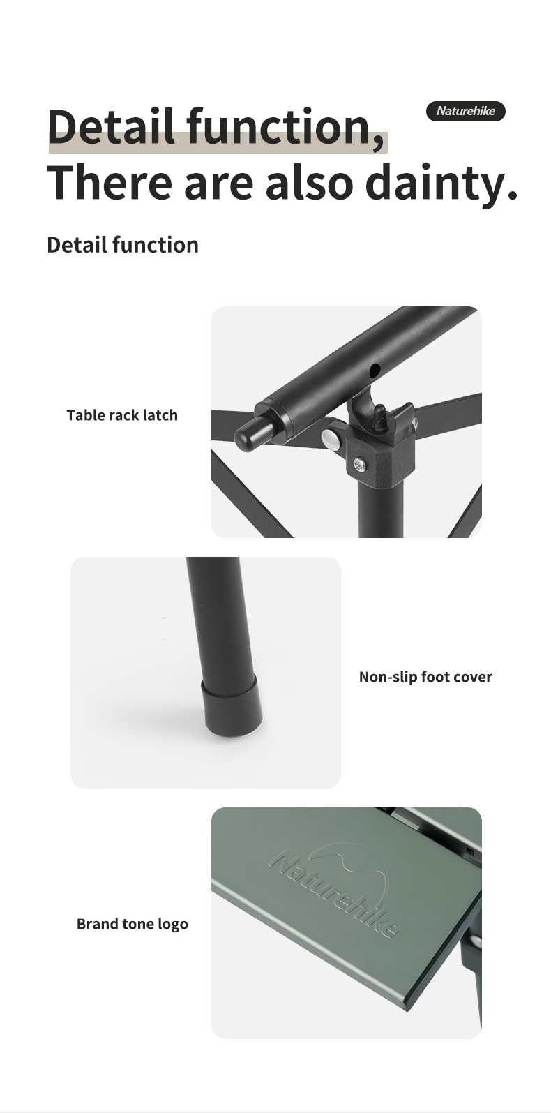Bàn xếp Inox gấp gọn đi cắm trại, câu cá NatureHike NH19Z008-Z ️Ưu điểm : gọn nhẹ, dễ dàng lắp đặt, dễ vệ sinh, hợp kim nhôm và nhựa ABS bền chắc. ️Thông tin chi