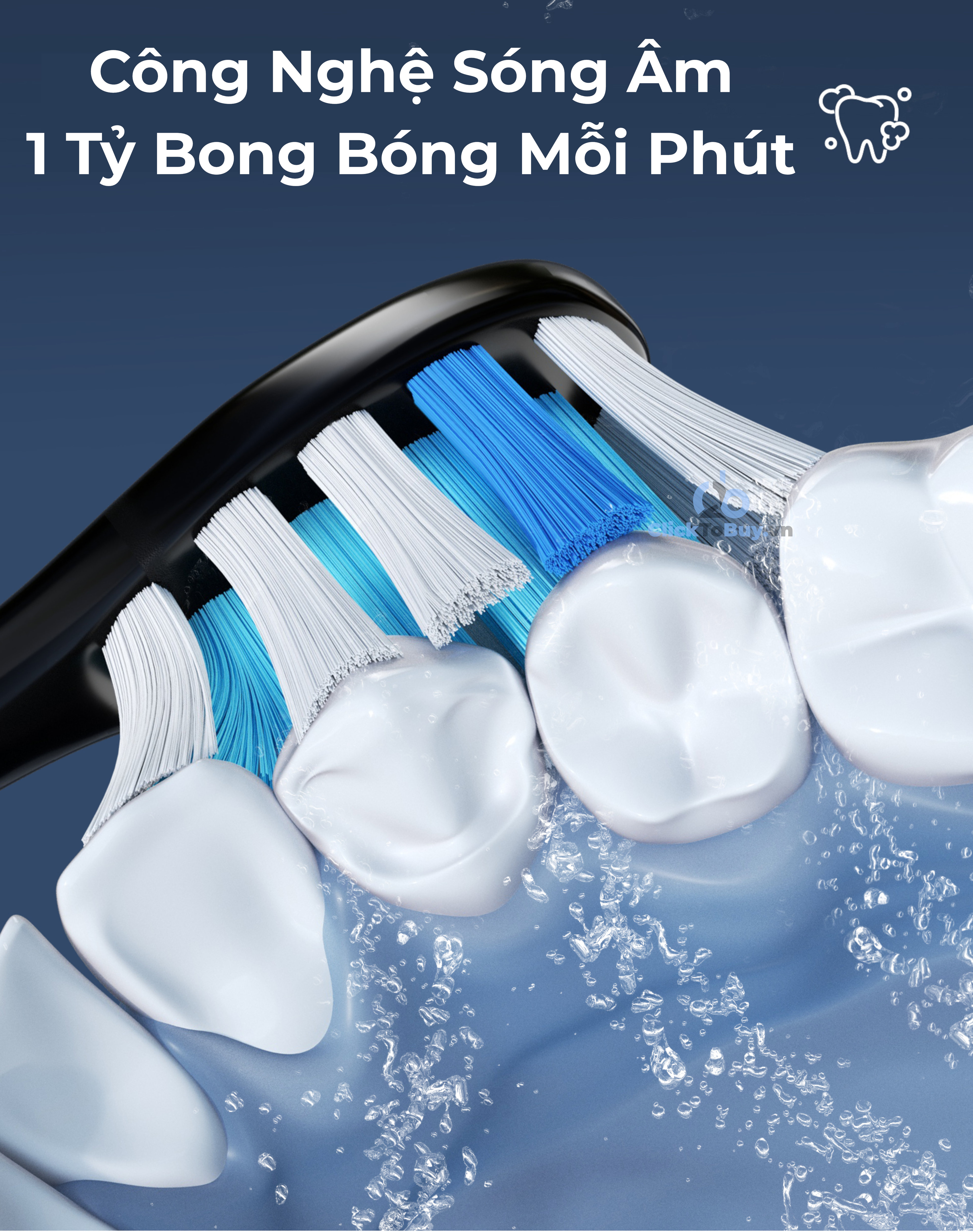 - Công nghệ sóng âm Sonic (Sonicare): Tạo ra tới 62.000 chuyển động bàn chải mỗi phút (31.000 rung động/phút), tạo ra các bong bóng siêu nhỏ chứa kem đánh răng và nước, len lỏi