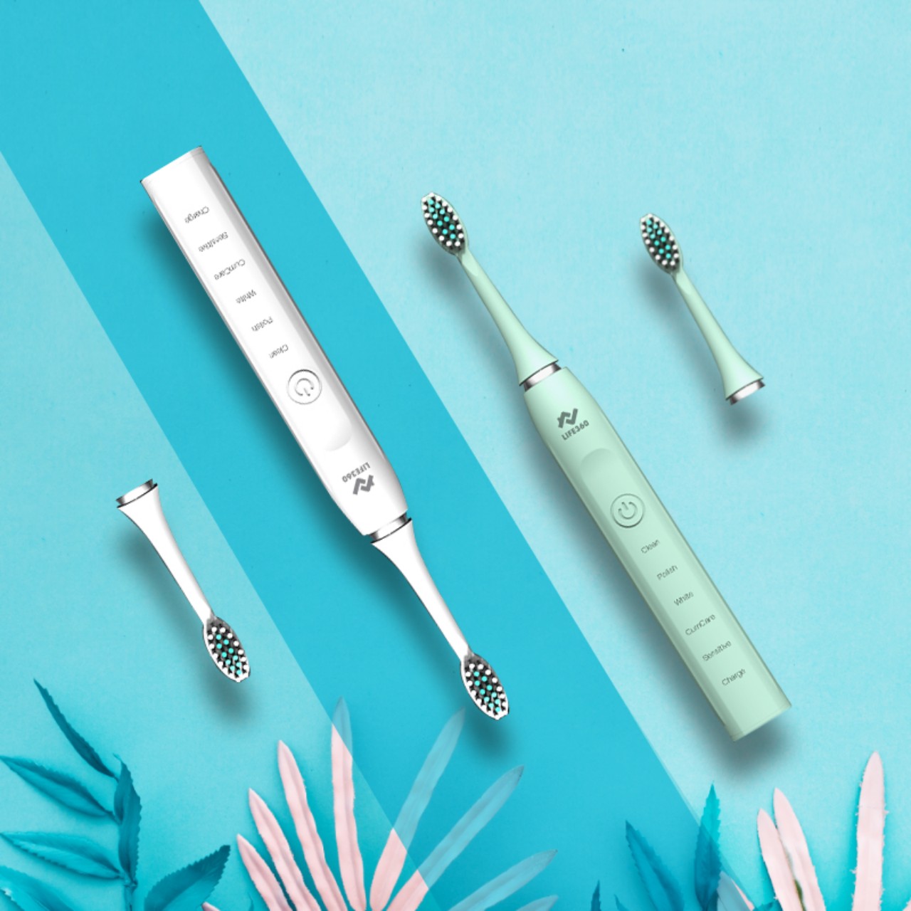 Bàn chải đánh răng thương hiệu Life 360 hiện có 5 chế độ chải răng linh hoạt bao gồm: Làm sạch, Đánh bóng, Làm trắng, Massage nướu, Cho răng nhạy cảm