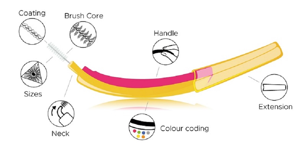 - Bàn chải kẽ răng được chèn vào từng không gian kẽ răng và việc làm sạch được thực hiện bằng cách di chuyển qua lại và xoay bàn chải theo chiều kim đồng hồ, dễ dàng thâm nhập vào các không gian kẽ răng.