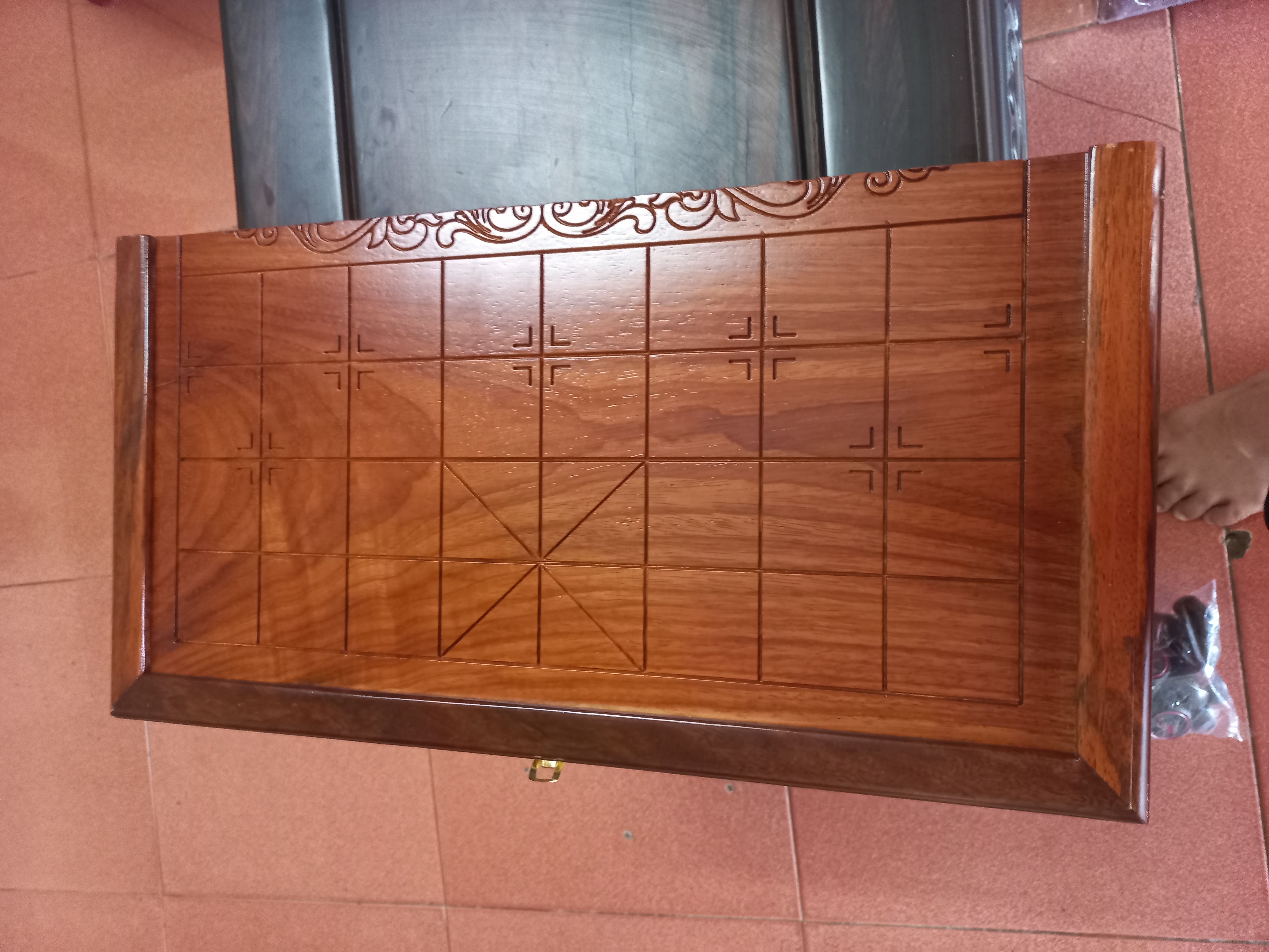 _ Bàn cờ tướng chân cuốn thư có ngăn kéo được làm bằng chất liệu gỗ hương tự nhiên 100% _ Kích thước ngang 50 dài 56 cao 7cm _ Bàn cờ tướng được thiết