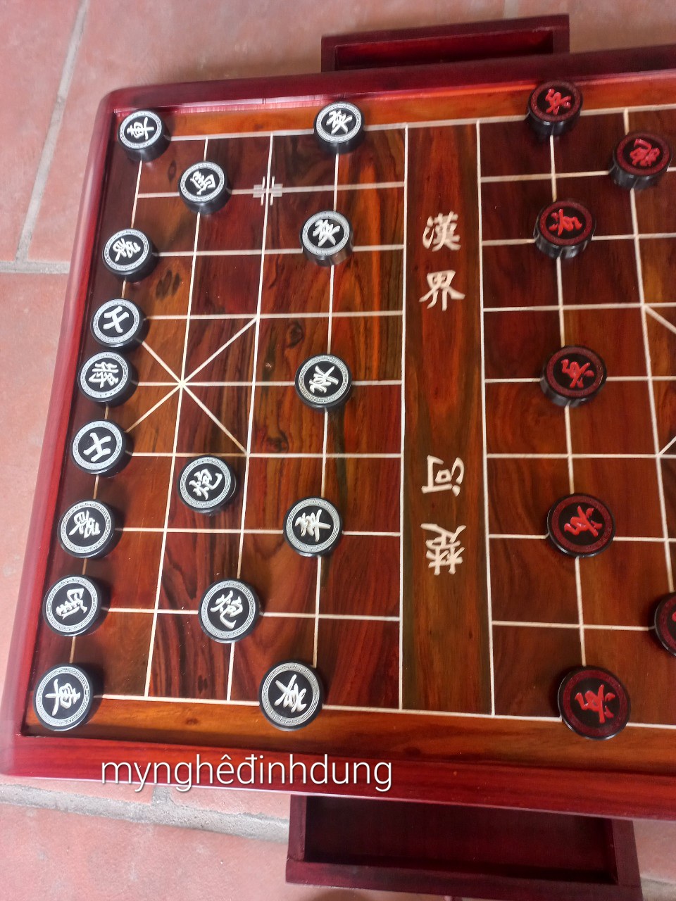 Mua tại TiktokBàn cờ tướng ngăn kéo mặt bàn được làm bắng chất liệu gỗ trắc đỏ đen , khung viền bằng gỗ hương tự nhiên 100% Kt bàn 50×56cm dầy 8cm Quân cờ tướng bằng sừng trâu mặt tròn 3.7×1.5cm khắc 2 mặt Bộ bàn cờ tướng được chế tác ,chạm khắc vô cùng tỉ mỉ ,tinh xảo kỳ công đạt độ thẩm Mỹ, chính xác cao àn cờ quân làm và hoàn thiện từ những người thợ giàu kinh nghiệm cũng như tay nghề cao trong làng nghề truyền thống.Chính vì thế Bộ bàn cờ đã đáp ứng đầy đủ mọi tiêu trí cần thiết ( Như đẹp bền rẻ ) Thẩm Mỹ nghệ thuật với chất lượng hoàn hảo .