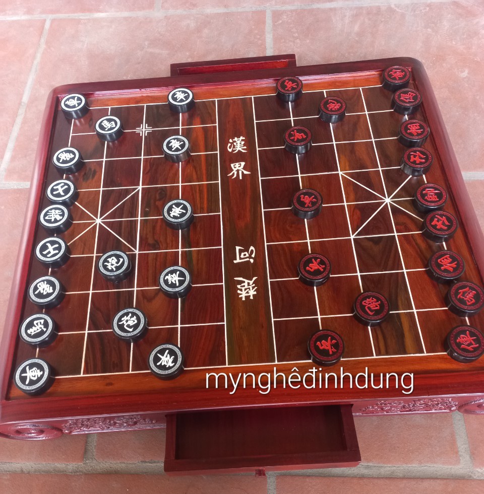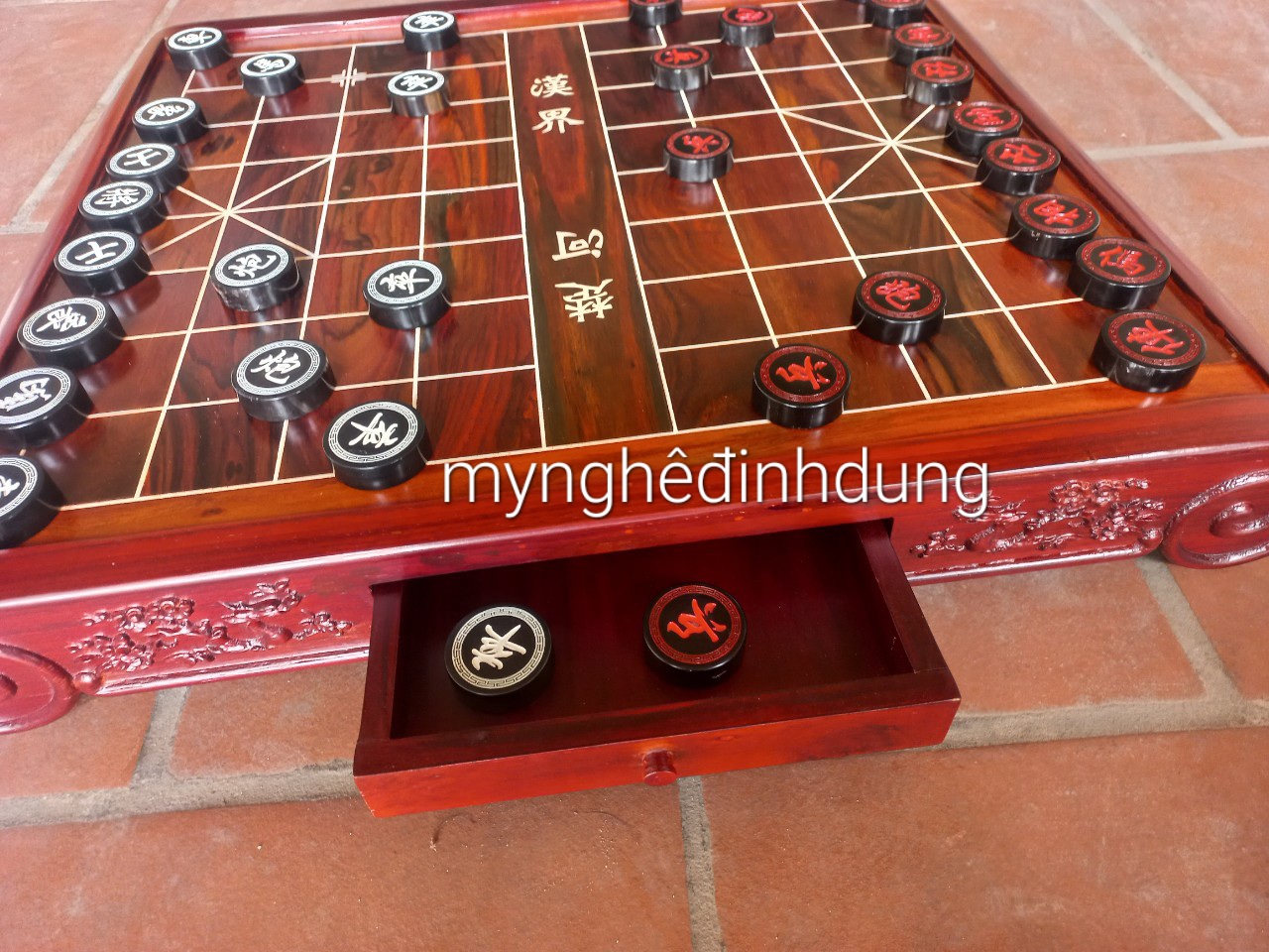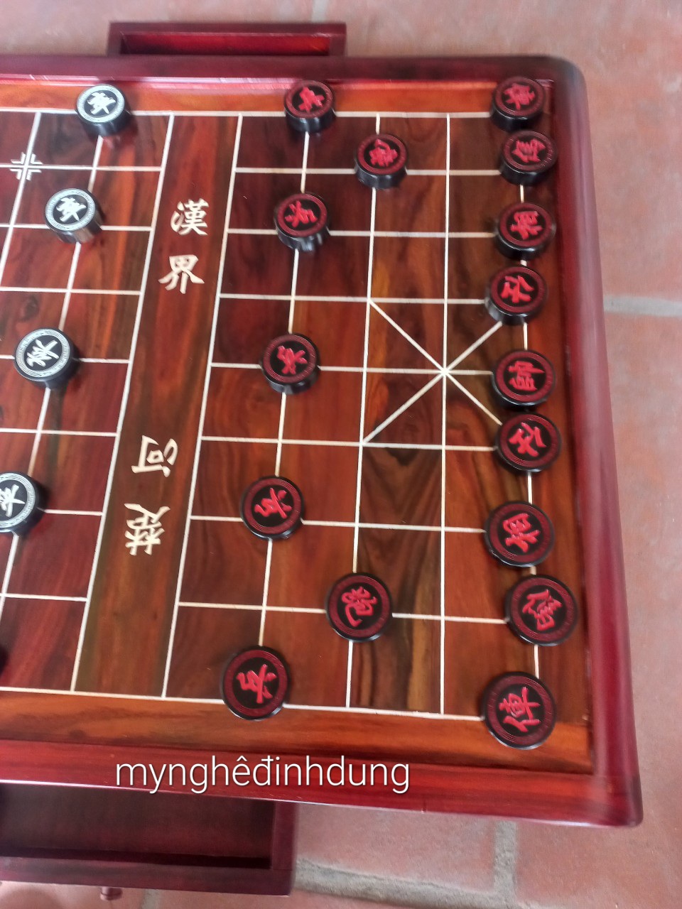 _ Bộ bàn cờ tướng +quân cờ được làm bằng chất liệu gỗ trắc đỏ đen tự nhiên 100% _ Kt bàn cờ 52×50 dầy 3cm _ Kt quân cờ 4.0×1.5cm _ Bộ bàn cờ