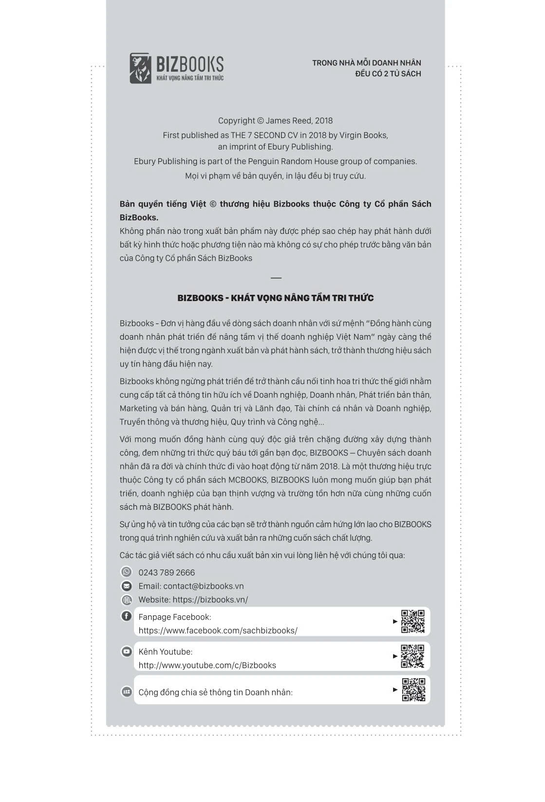 Quy tắc bảy giây có vẻ khá khó nhằn, nhưng bạn không cần chán nản bởi cuốn sách Bản CV Đẳng Cấp sẽ giúp bạn làm tốt việc đó. Qua từng trang sách, bạn sẽ học được nhiều điều quý giá mà các nhà tuyển dụng đã chia sẻ với tác giả dưới dạng những câu trích dẫn. Bên cạnh đó, tác giả James Reed còn cố gắng phân loại các lỗi sai mà người săn việc hay mắc phải bằng cách hỏi những người trong mạng lưới đối tác kinh doanh rộng rãi về kinh nghiệm của họ trong việc đánh giá và sàng lọc CV.